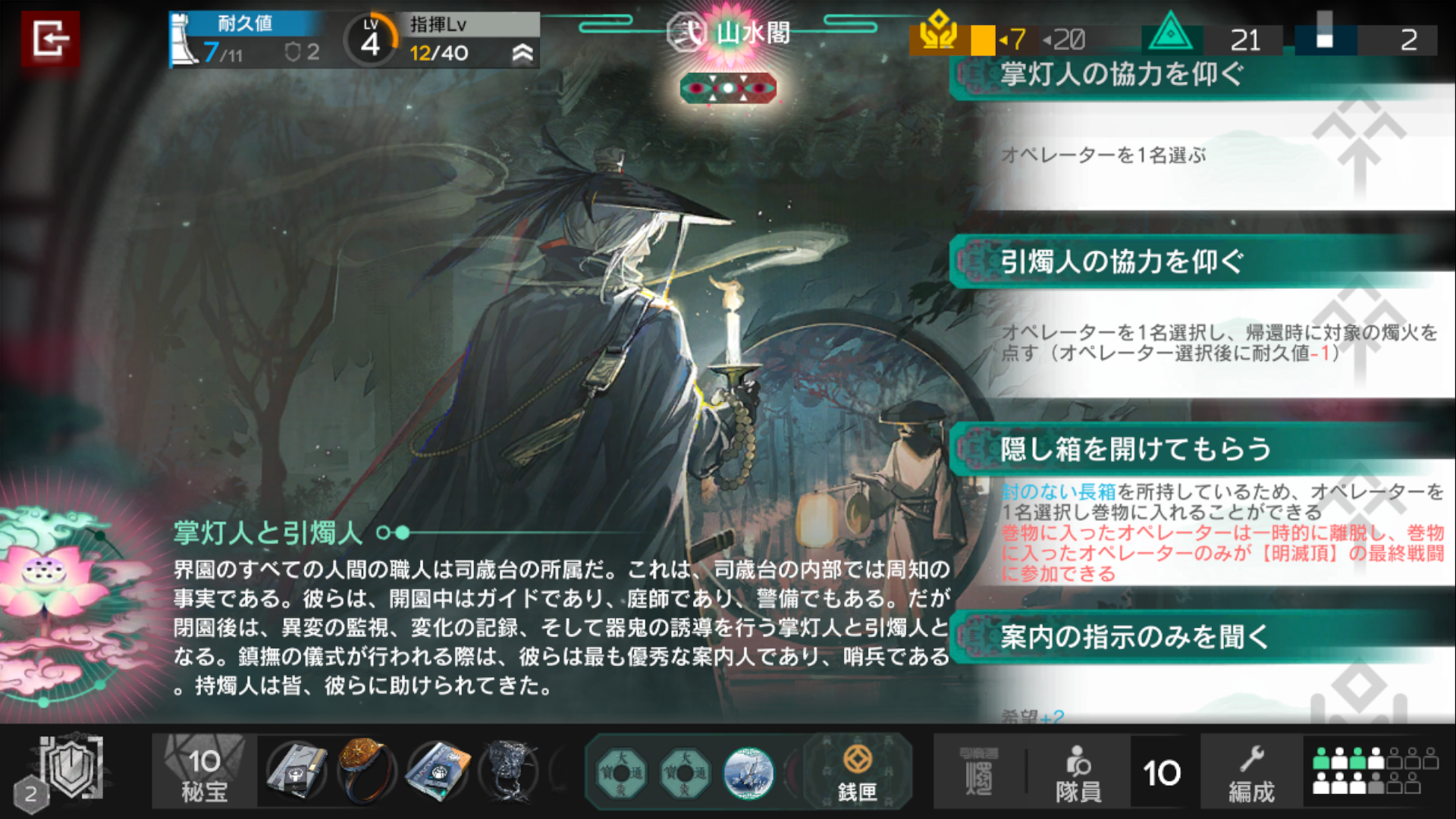 伺燭客のみ戦闘可能です。そもそも5人以上いないといけないですが、しっかり準備して伺燭客を増やして戦いましょう。
