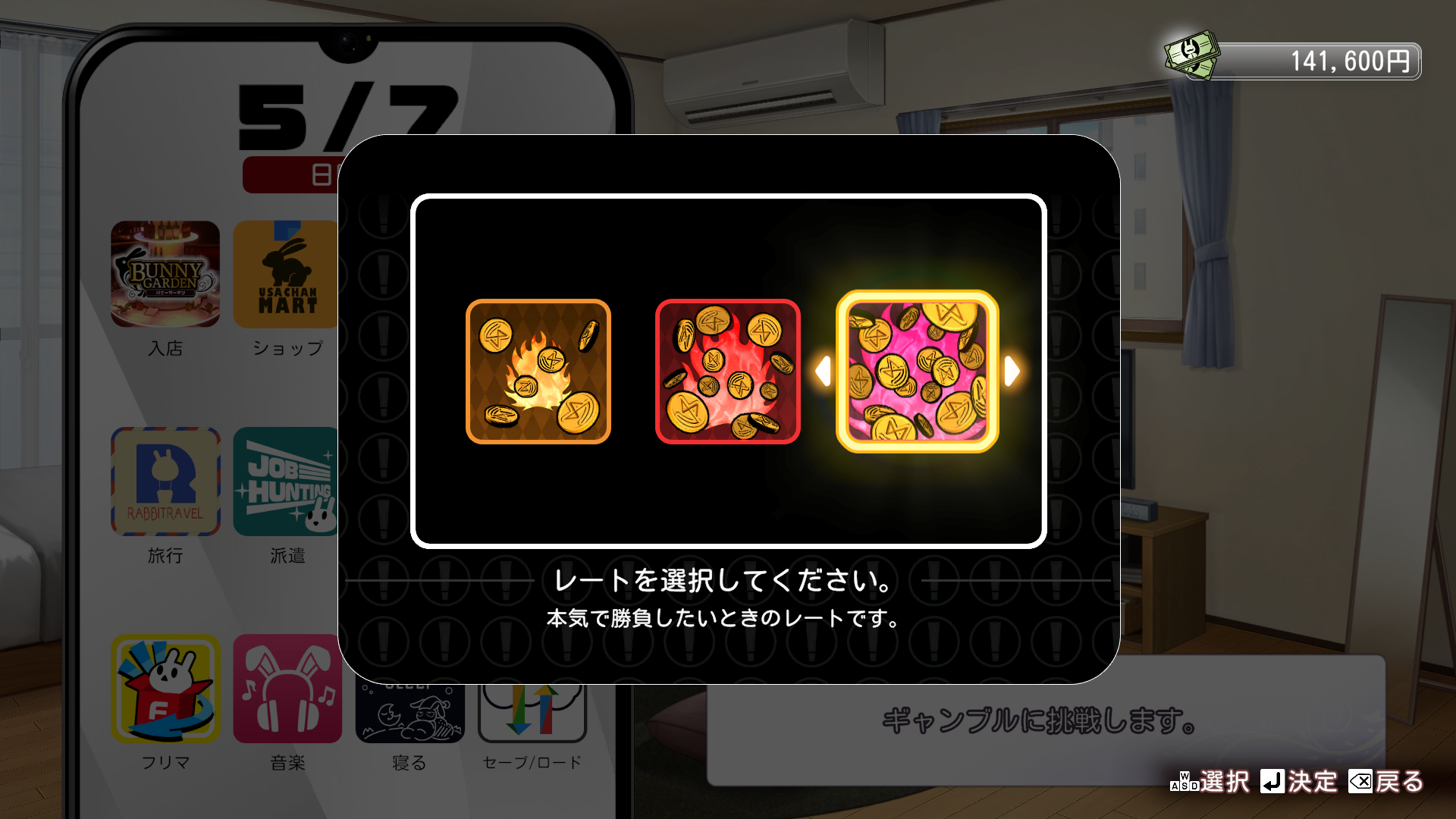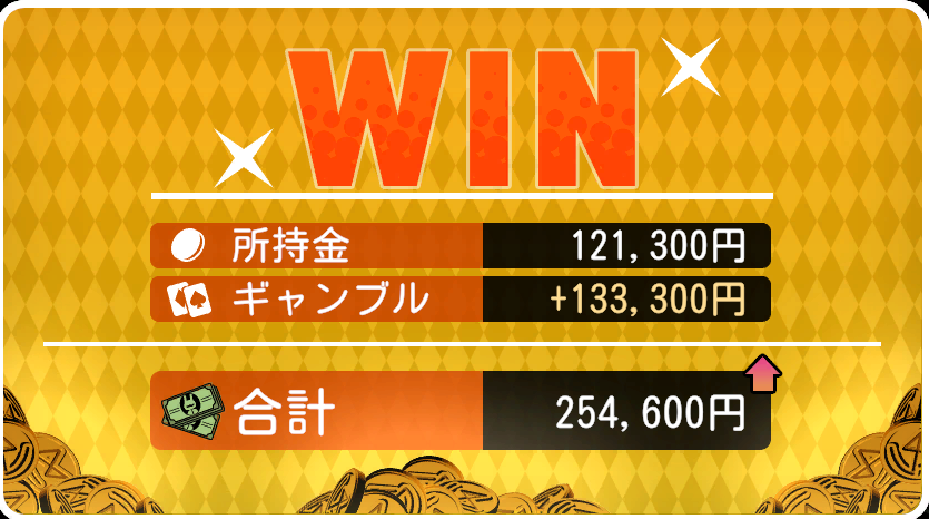ギャンブルは基本的には勝てる仕様となっています。前作同様セーブロードも効果があるので、本気で勝負したいレートを選んで、-5万以上した場合にロードをするのをするだけで大幅に勝利しやすくなります。