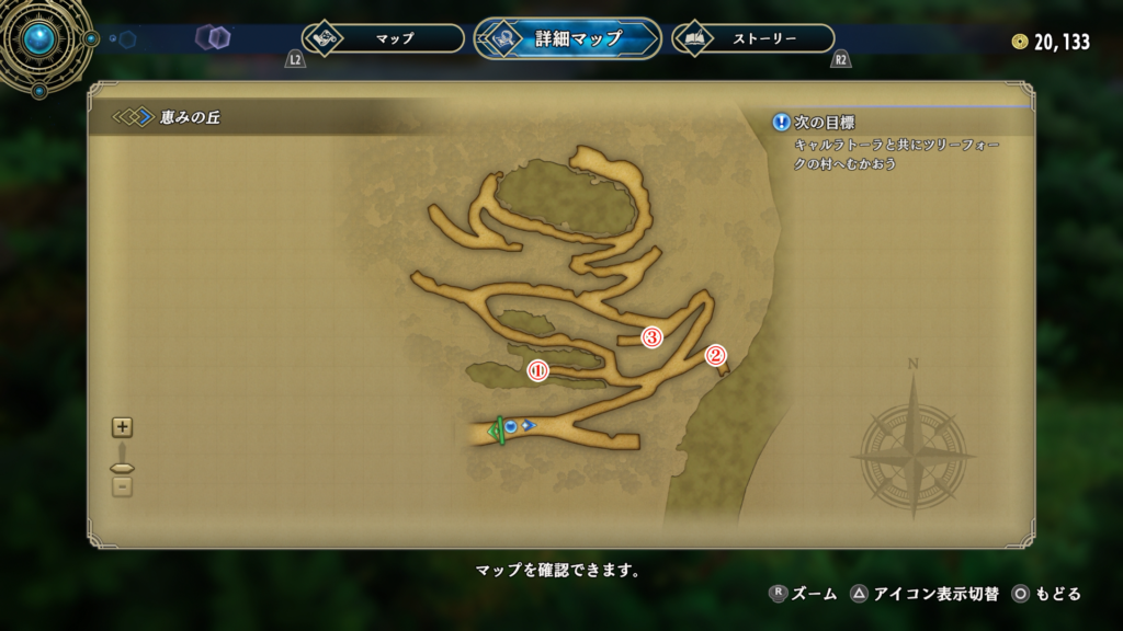 ワイラーは恵みの丘に到着すると、セーブポイントのすぐ近くに立っています。話しかけると妹が~という発言があるので、一緒に創作してあげましょう。以下のマップの順番で探すと妹が見つかって、イベントが進行しその後仲間になります。