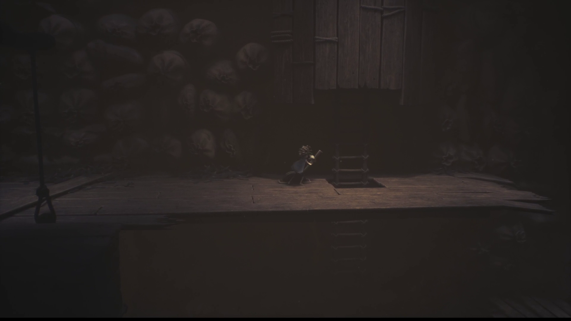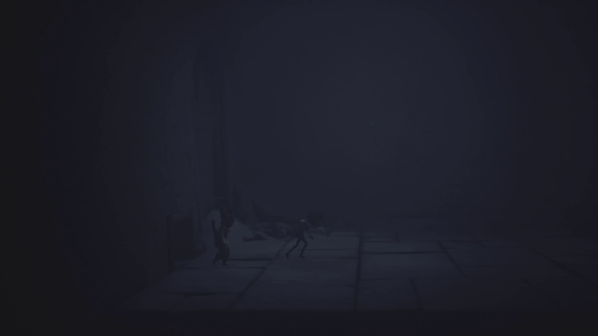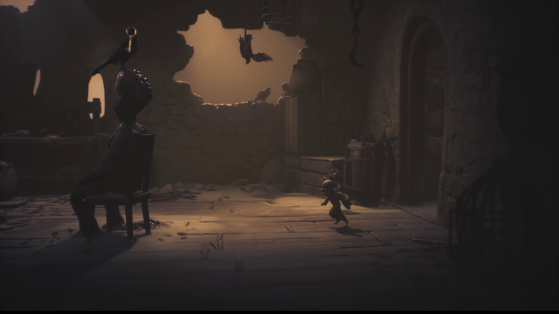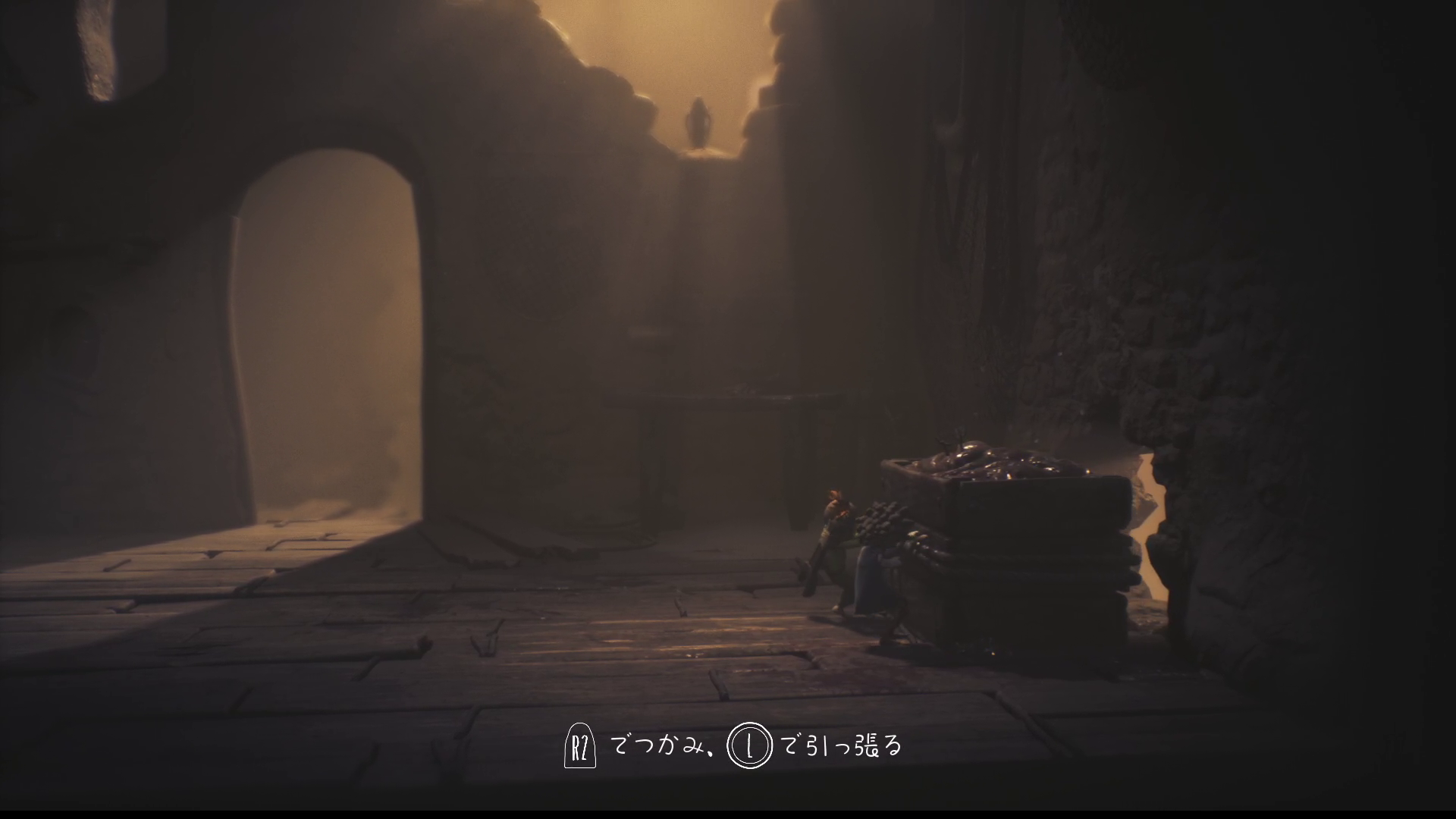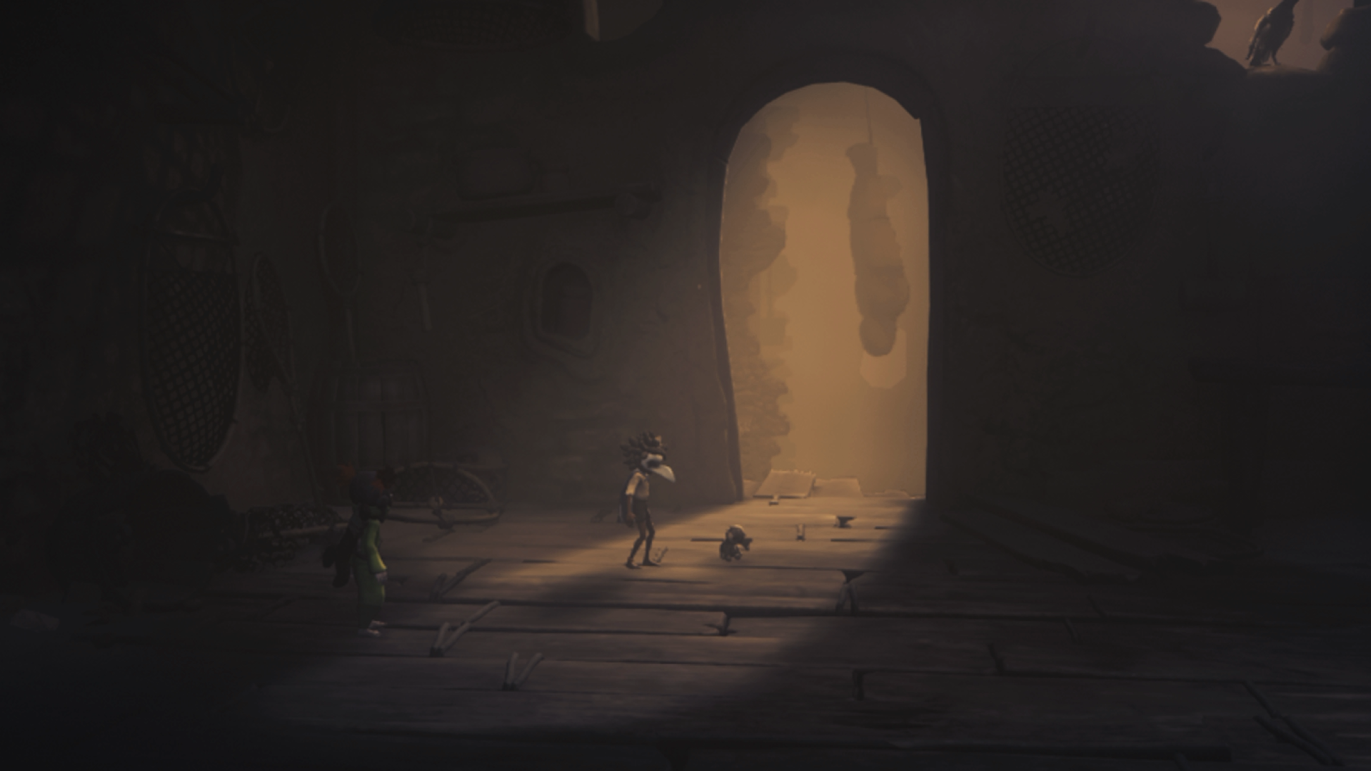 人形 | ![]() 先へ行くと光が差し込んでる場所に人形。人形はアクションで拾える。また、カラス1匹目 |