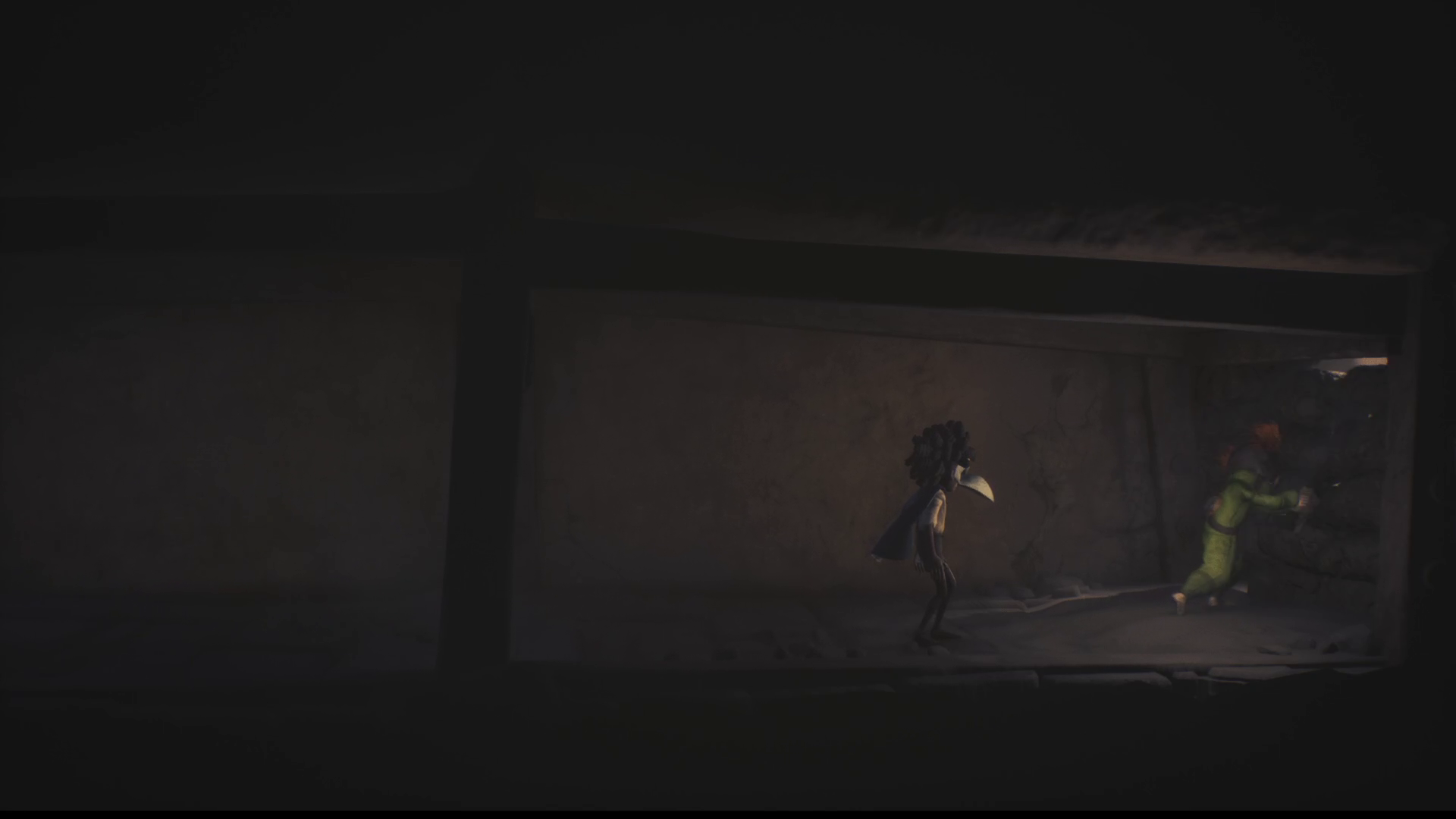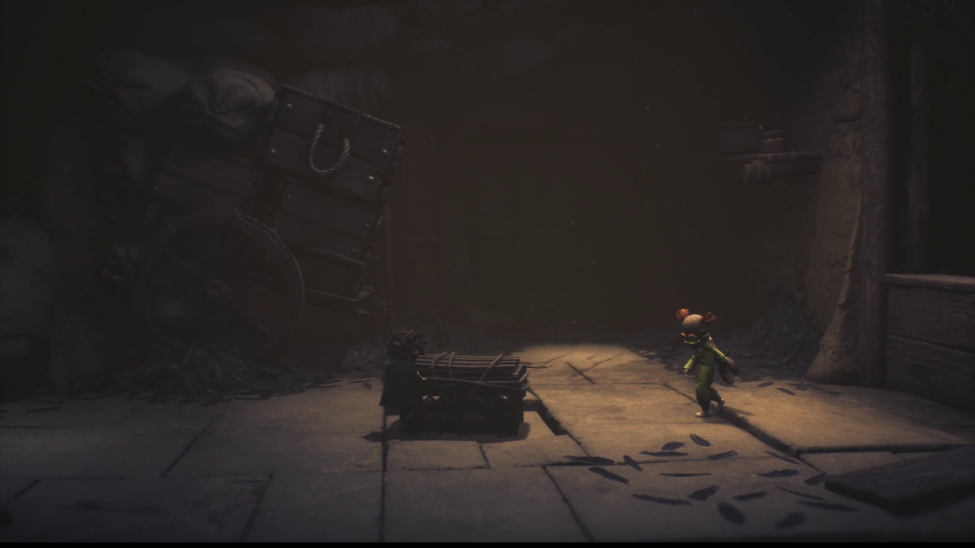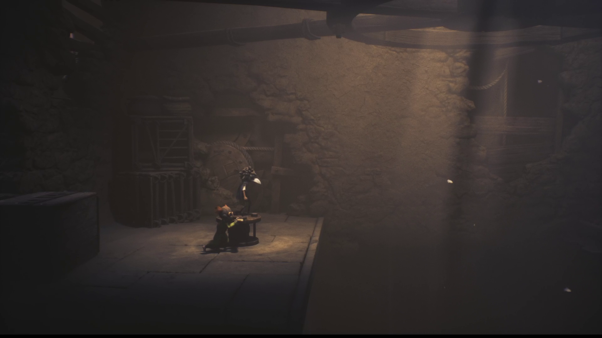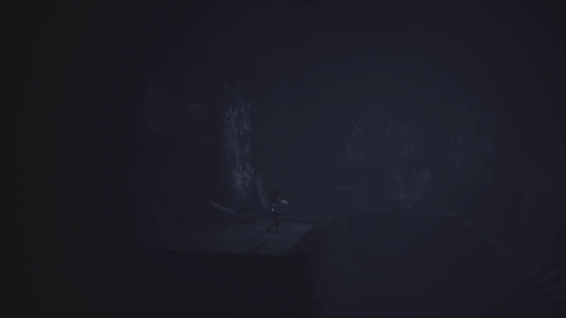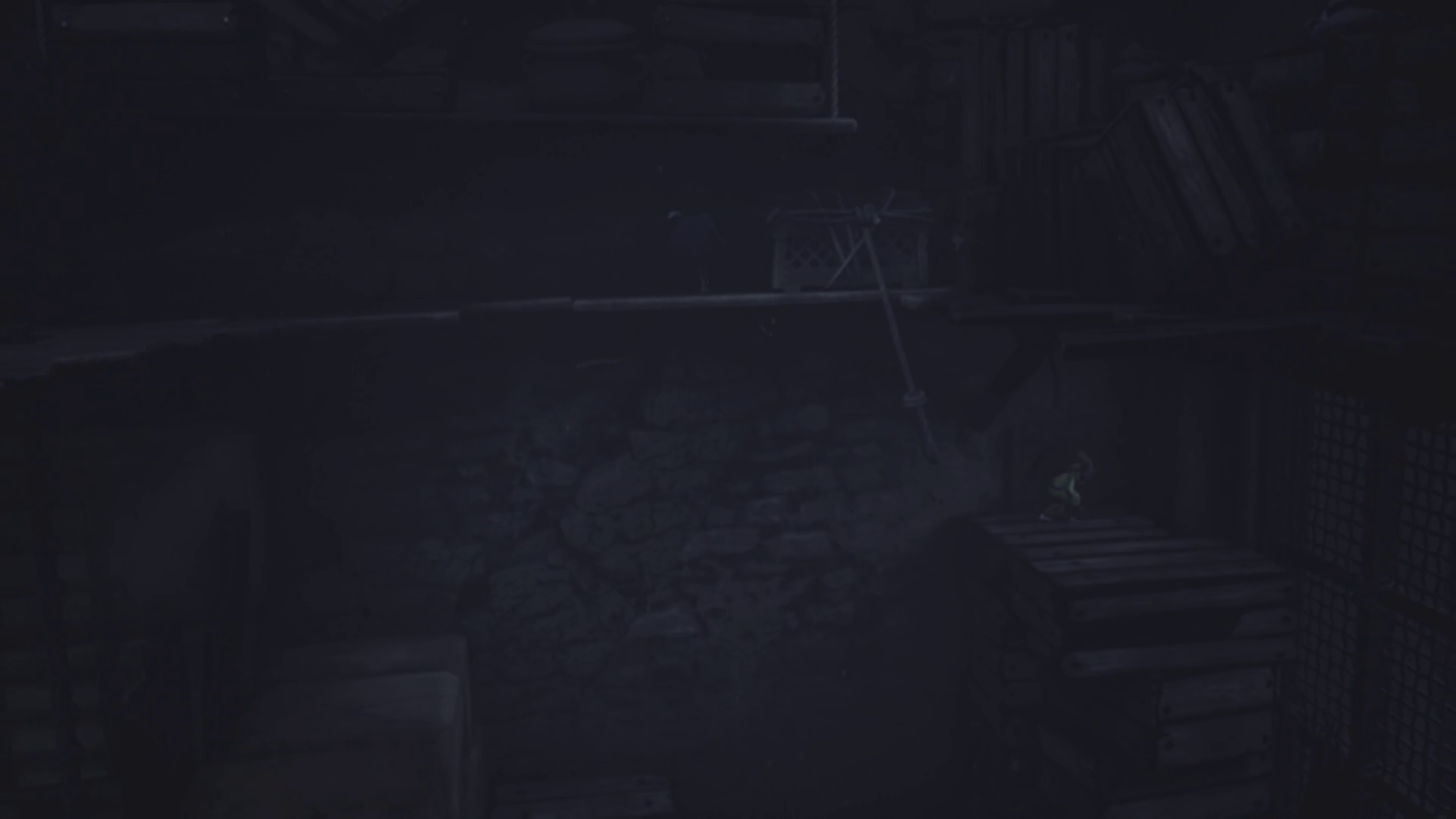 人形 | ![]() 先へ行くと光が差し込んでる場所に人形。人形はアクションで拾える。また、カラス1匹目 |