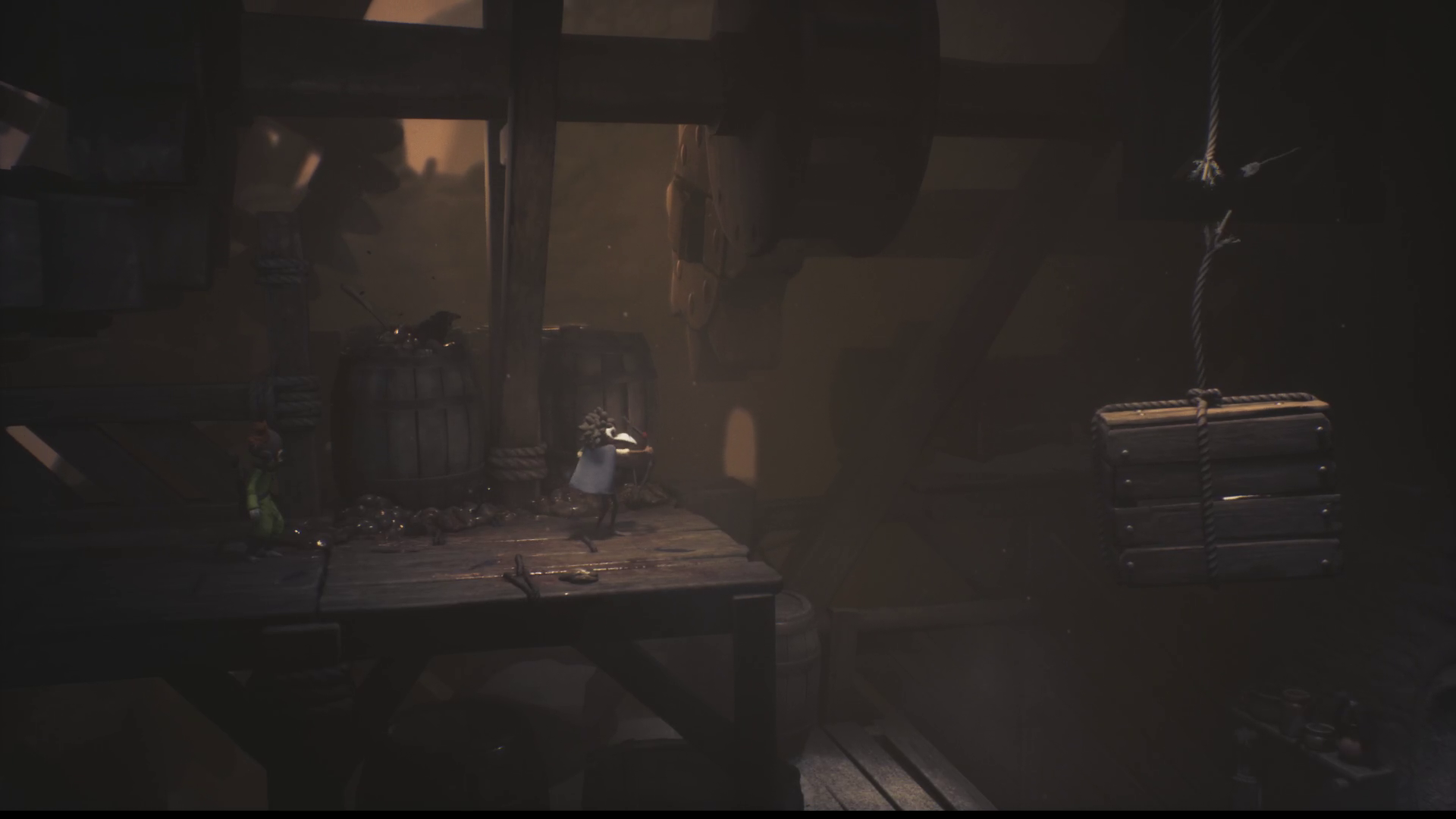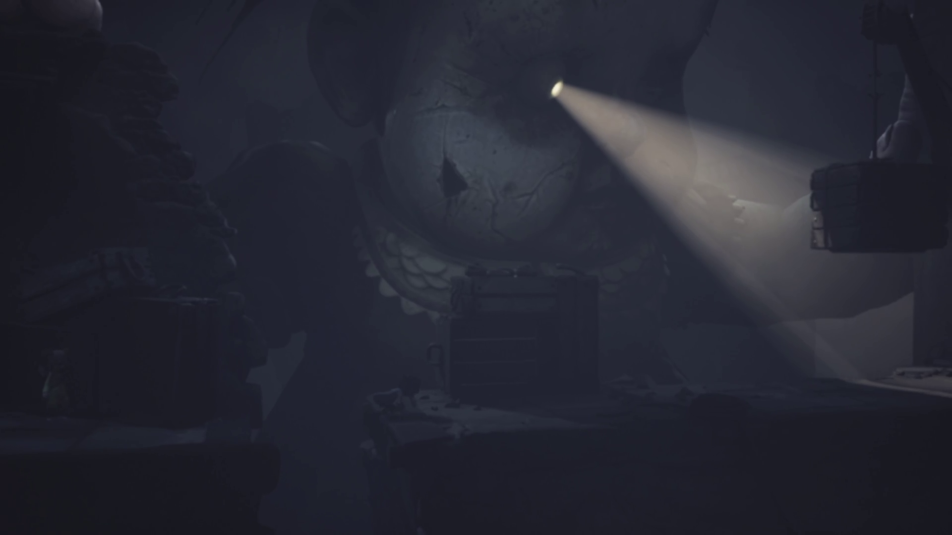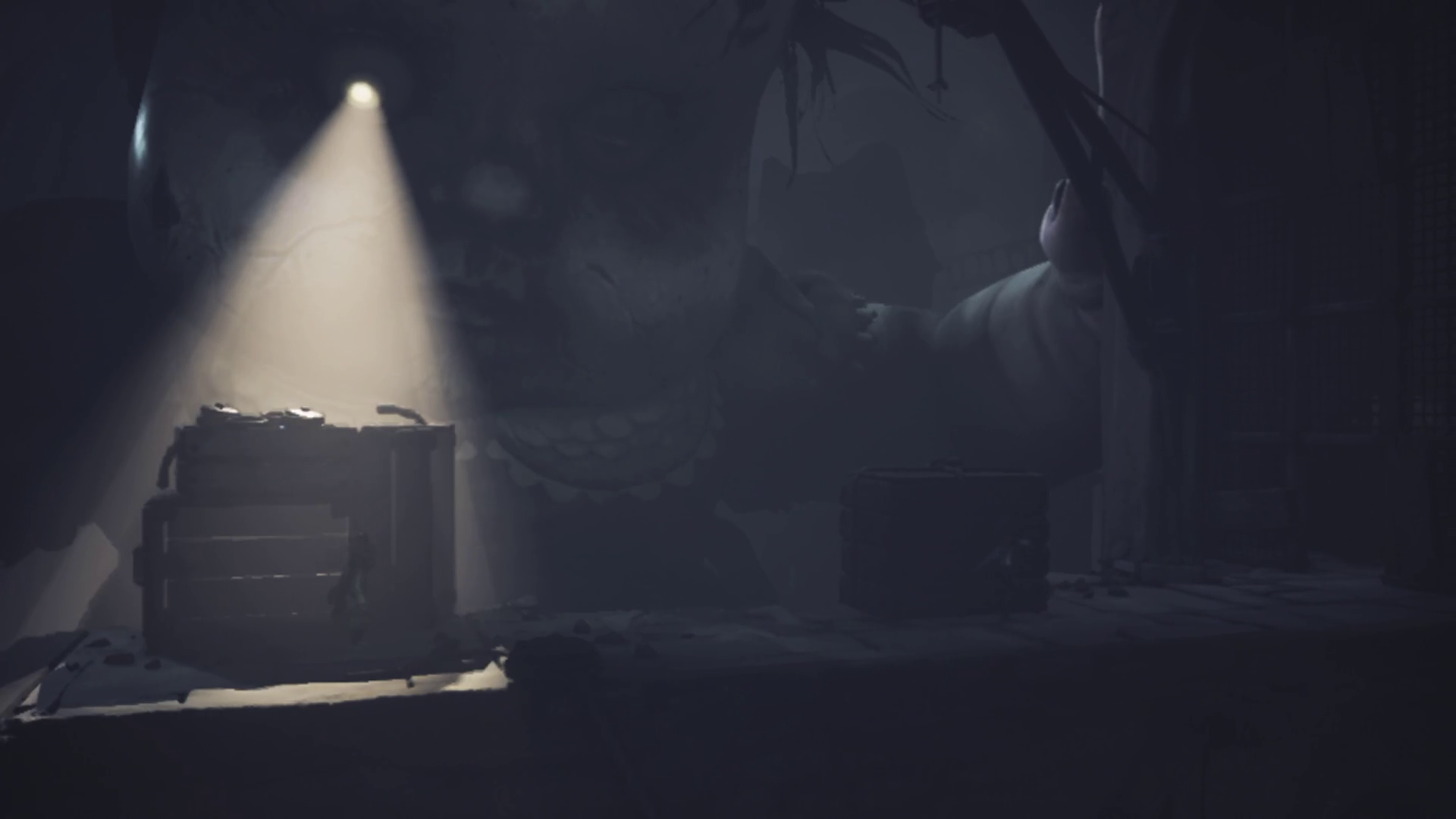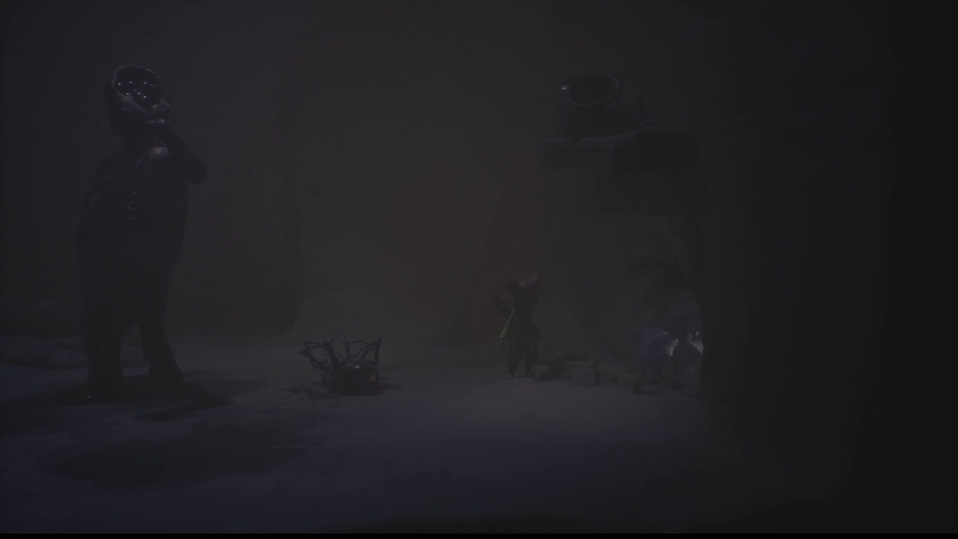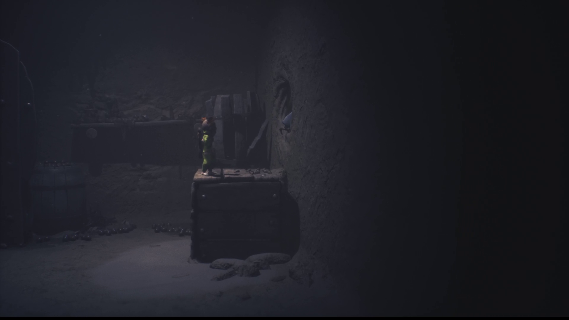 人形 | ![]() 先へ行くと光が差し込んでる場所に人形。人形はアクションで拾える。また、カラス1匹目 |