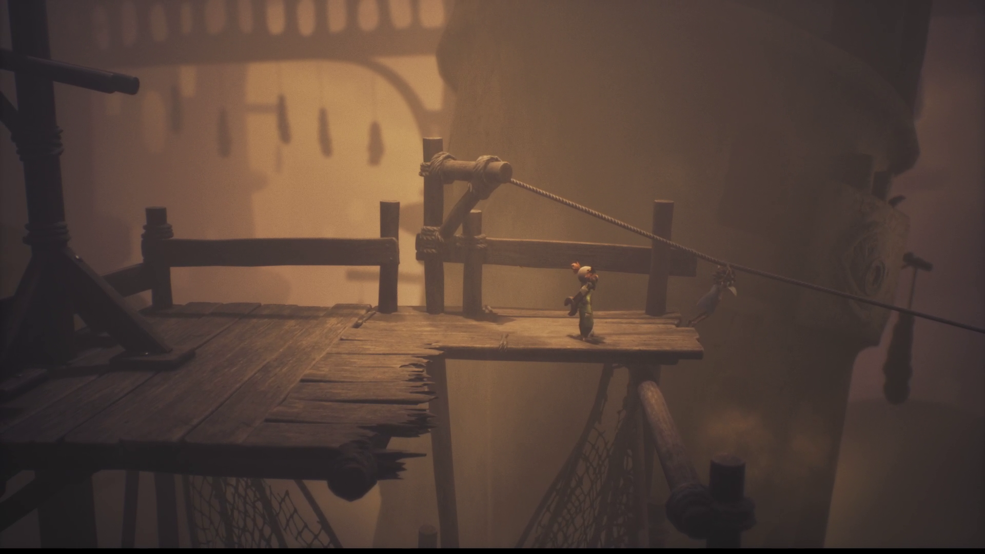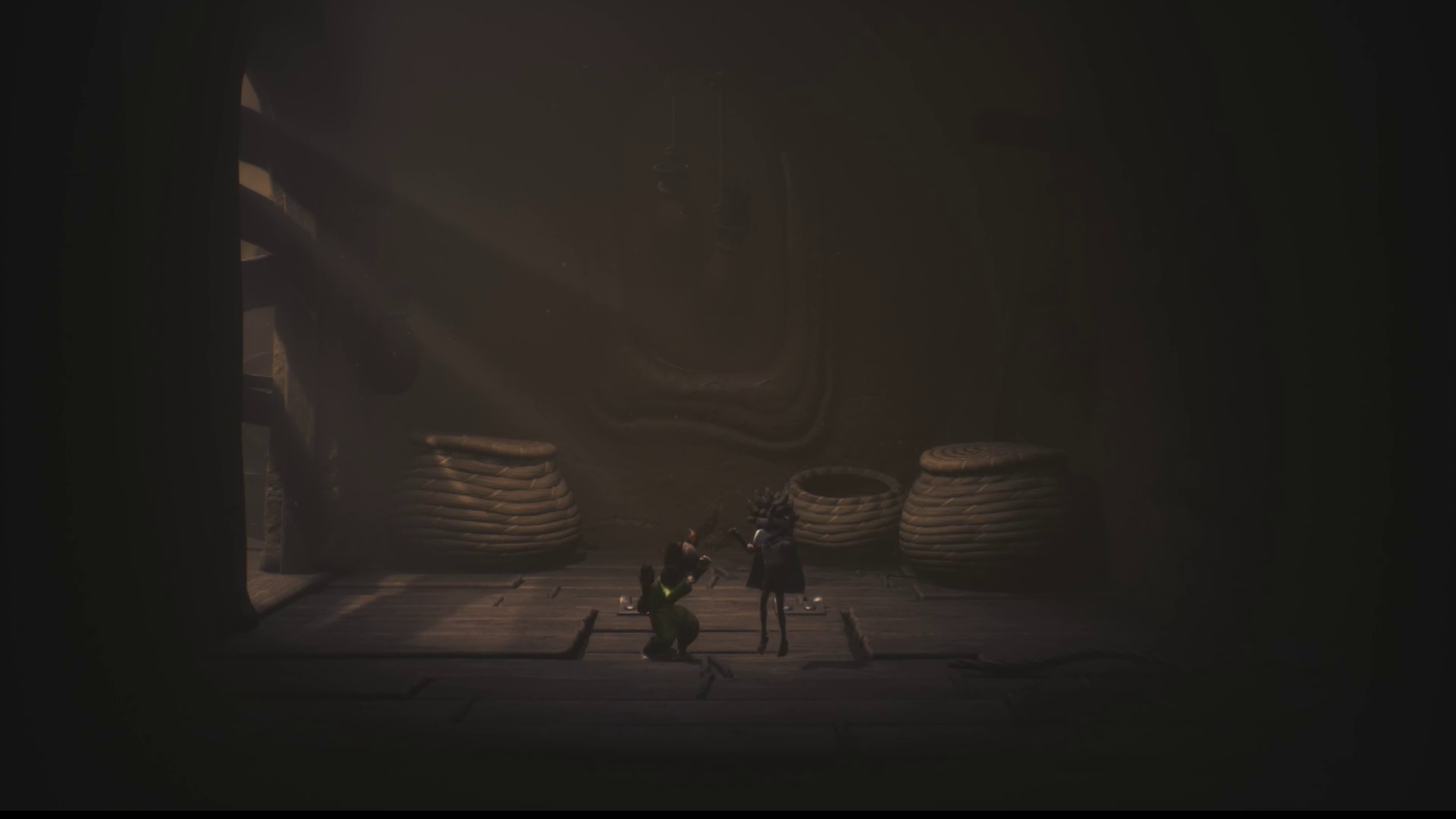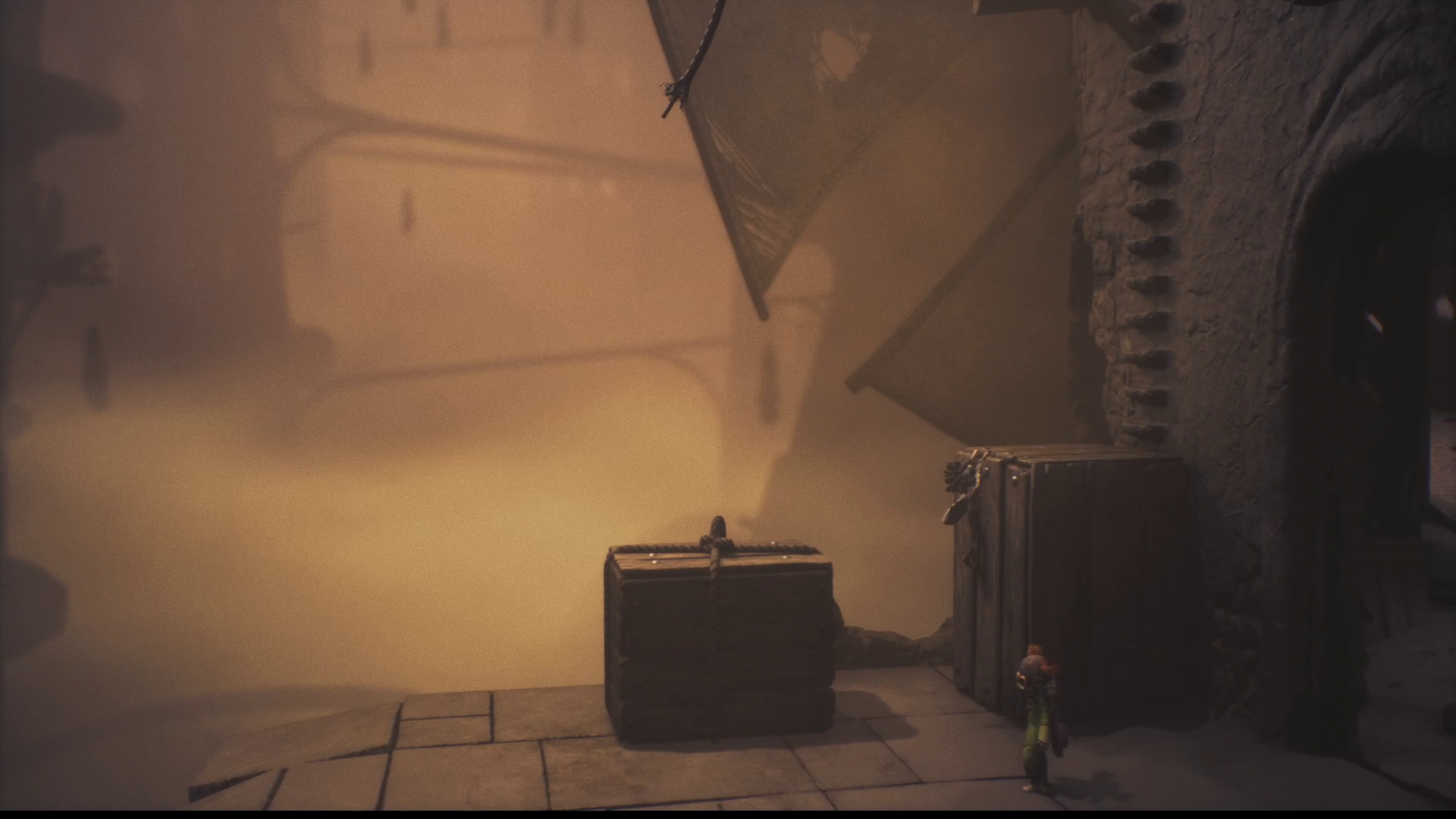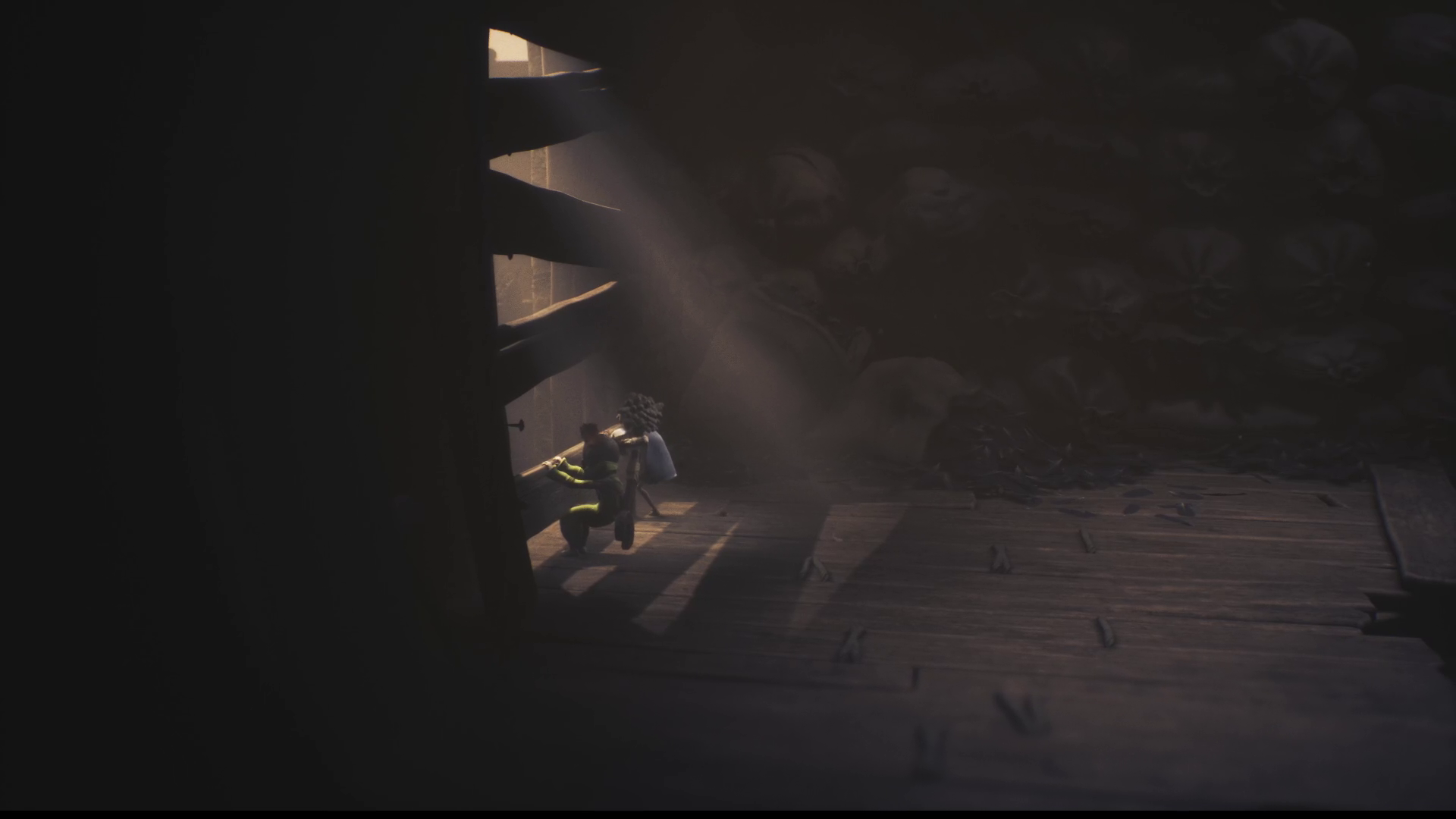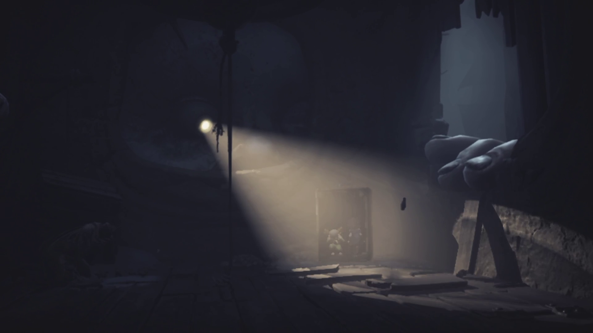 人形 | ![]() 先へ行くと光が差し込んでる場所に人形。人形はアクションで拾える。また、カラス1匹目 |
