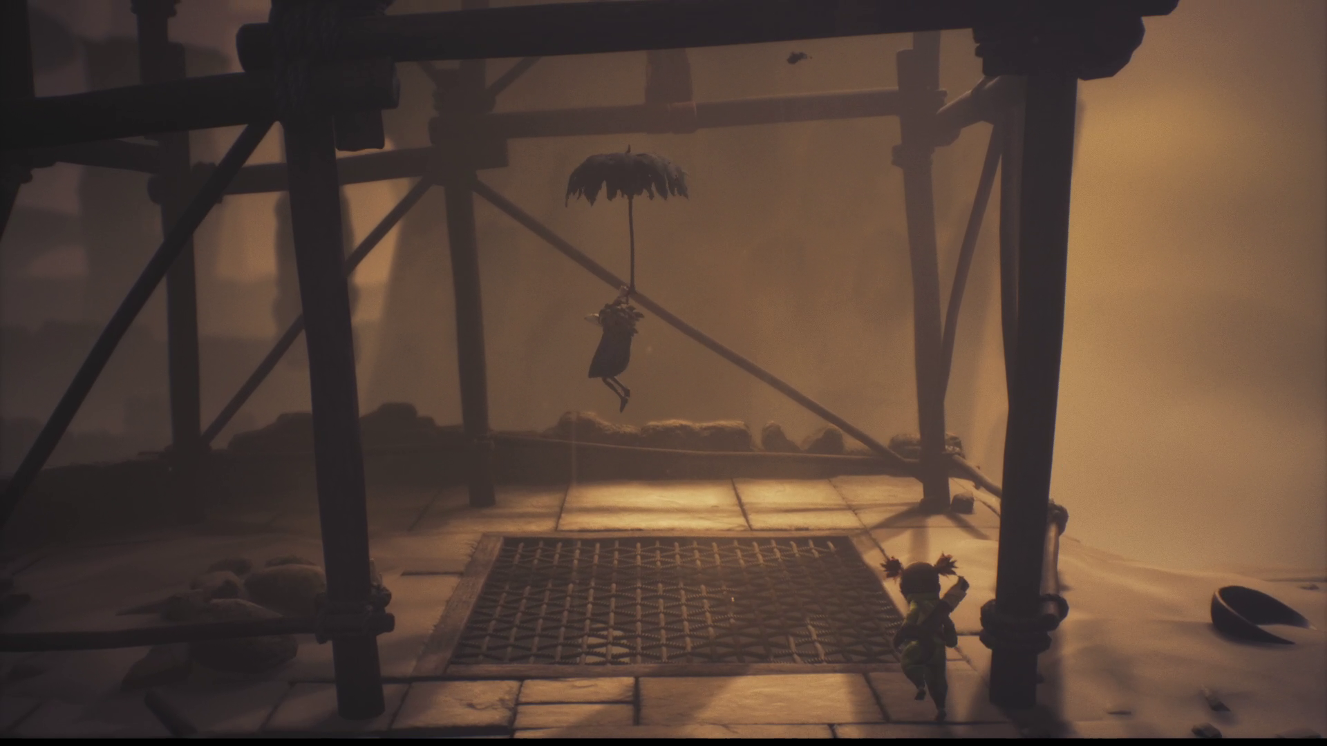 7 | 走って逃げた先でレンチで壁を壊す。その先は降りる際に傘を刺さないとやり直しなので注意。その先の扉を開けると赤ちゃんの目から逃げるエリア |