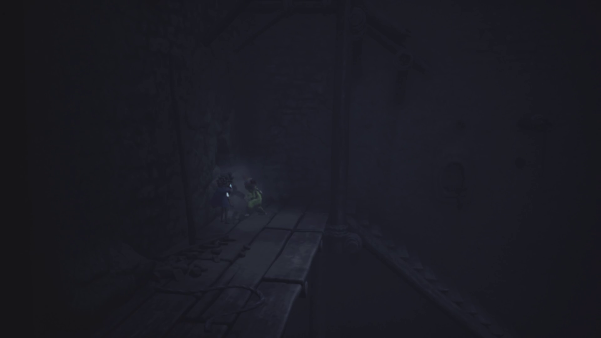 11 | ![]() 先に進んだら、壊れた壁のところから弓でロープを切る。その後先の扉を二人で押して先へ。アローンの場合はギミック起動させっぱなしじゃないと床が戻ってしまうので、弓を射るまで待つ |