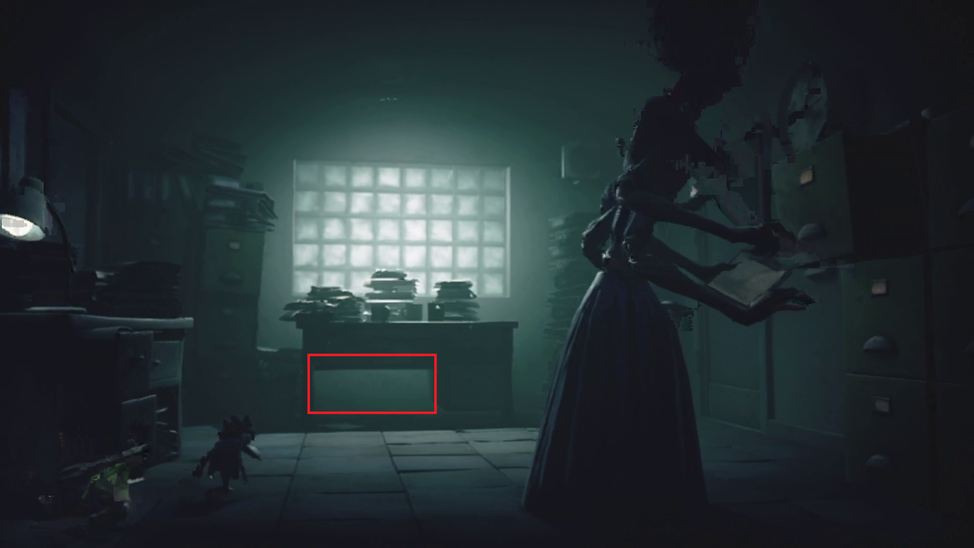 10 | ![]() 工場長が右に移動したらすぐさま中央の机の下に隠れる。ここも必ずしゃがんだまま移動する |