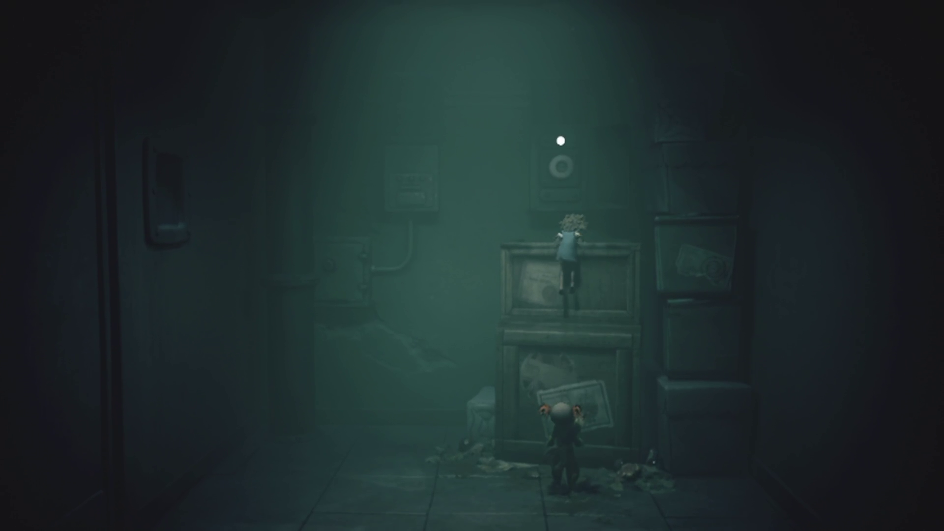 2 | ![]() 中央の積まれている箱に登る。相方は左のレバーに。ソロプレイの場合は勝手にレバーに移動してくれる。レバーを起動してくれなければXや△で催促しよう |