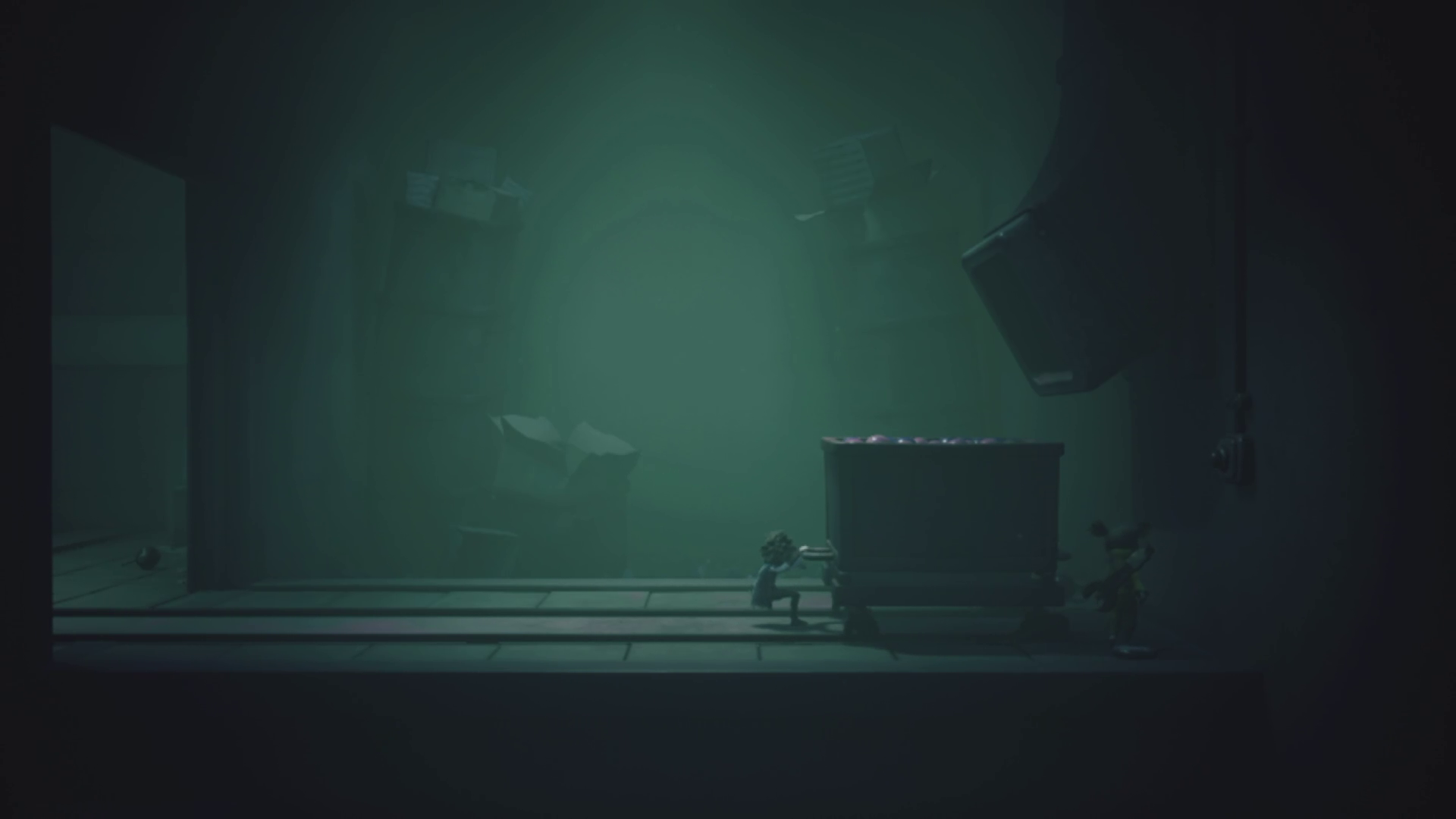 9 | ![]() 右端まで行くとお菓子が入る。ここからは二人でトロッコを押す必要あり。先程の場所まで戻る |