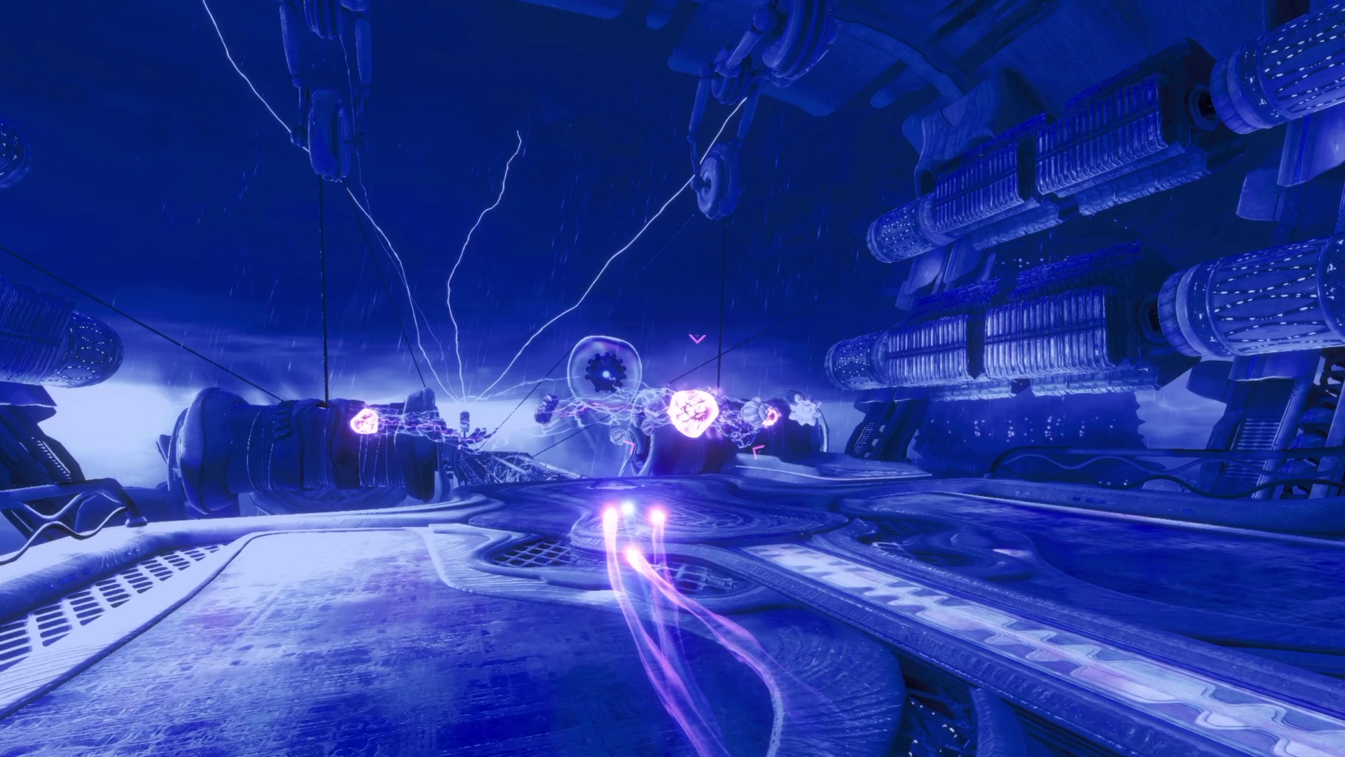 エネルギー球体を全て破壊されると一時的な機能不全に陥るが、球体が高速再生するため、3つ同時に破壊する必要がある。また、フライトドローン群を防御壁として制御しているため、総数の減少が無ければ球体の破壊は、困難である。