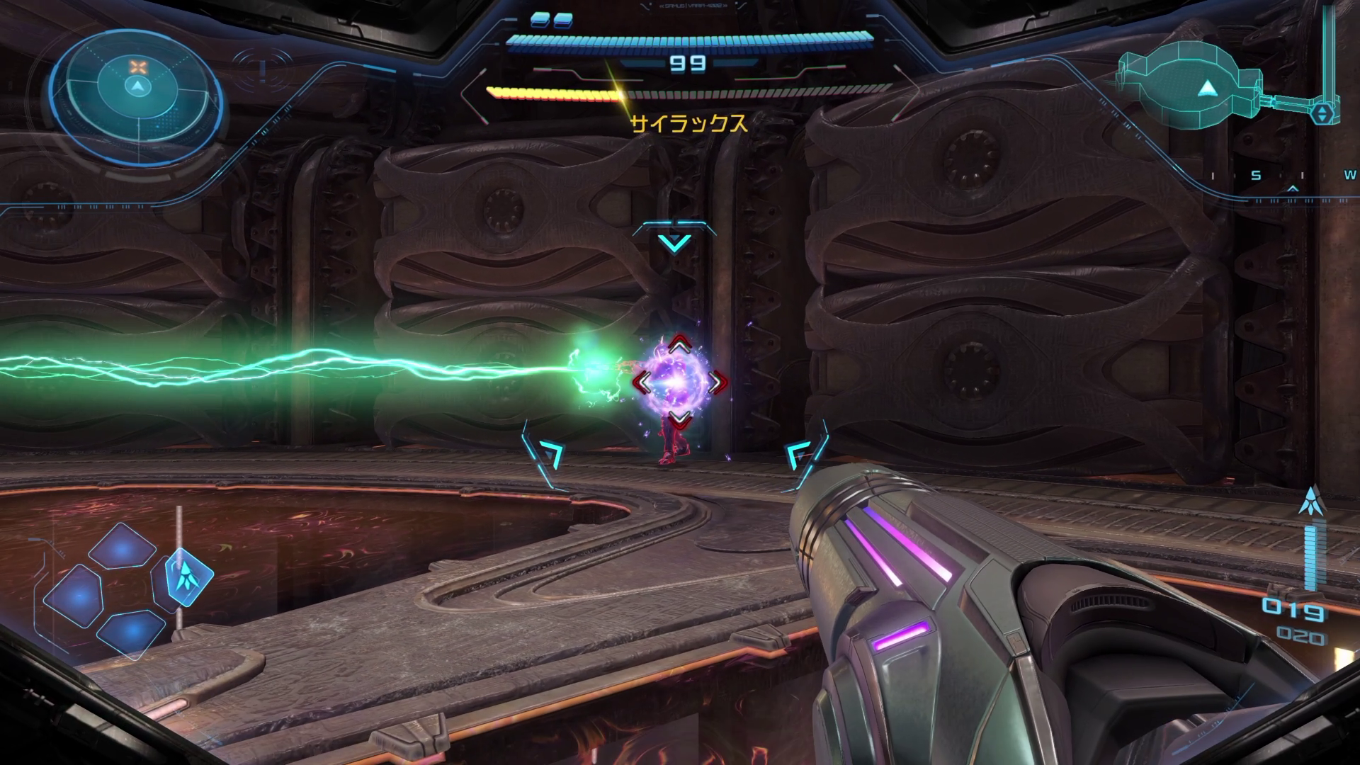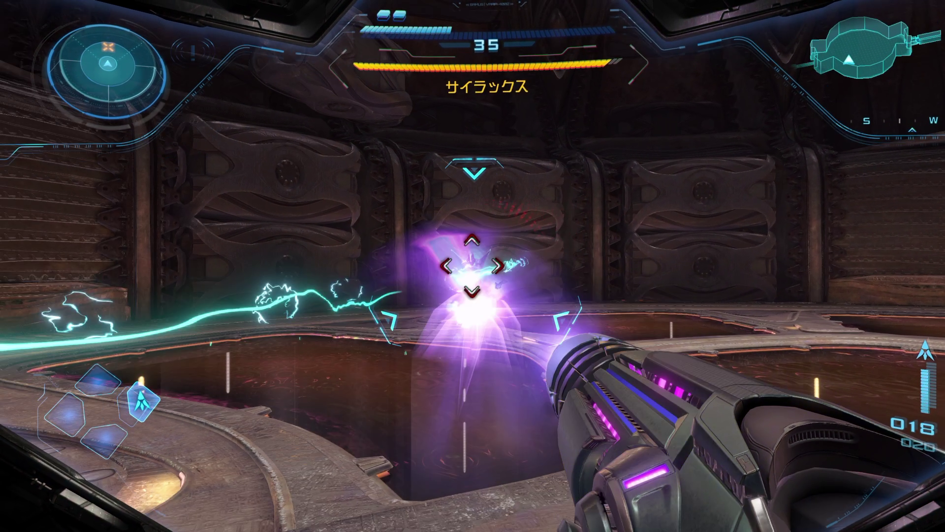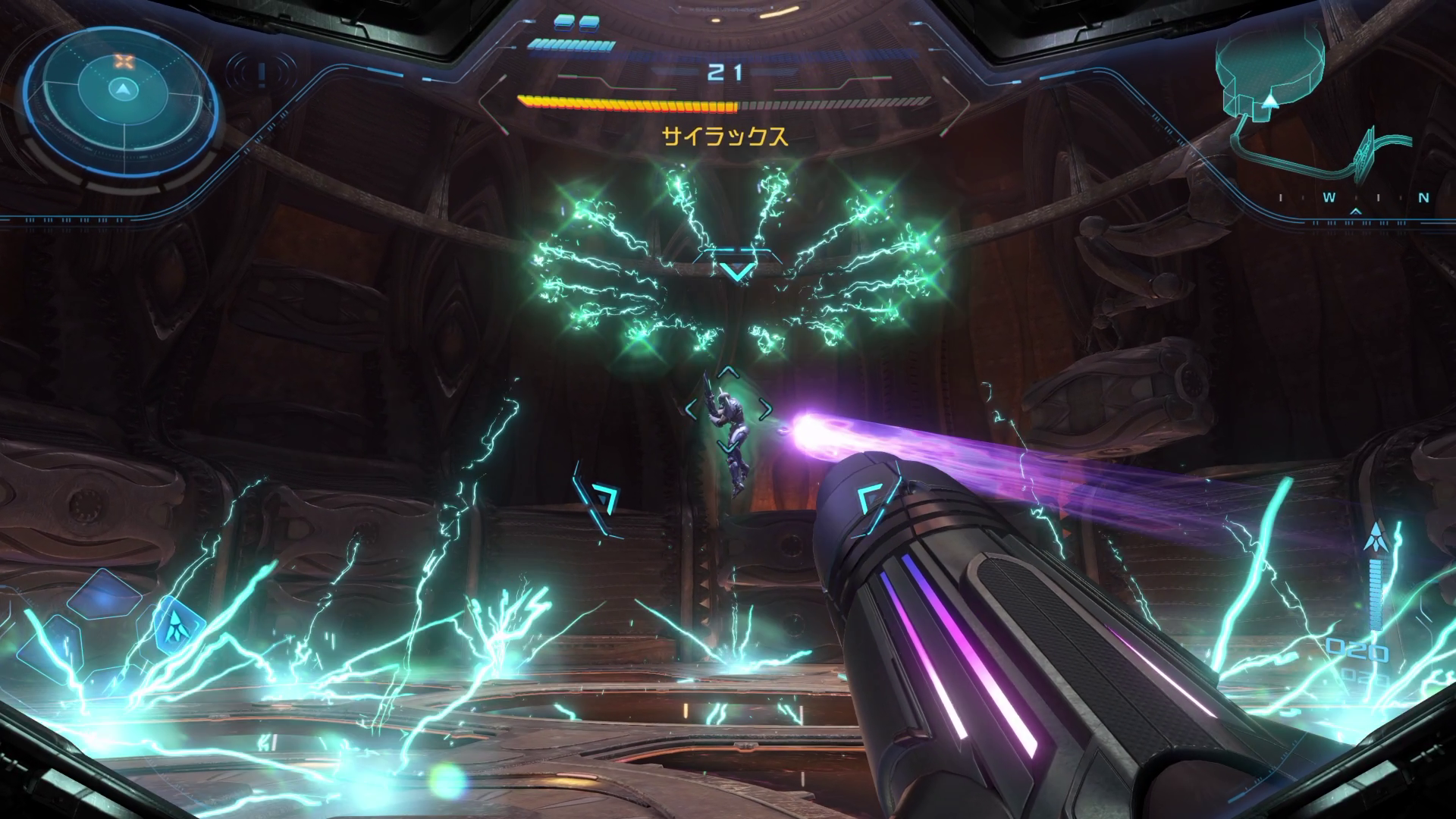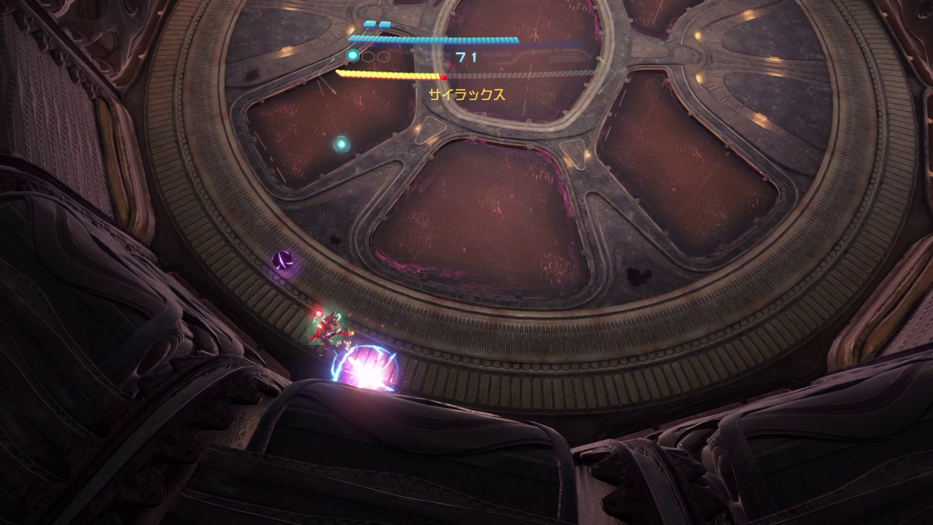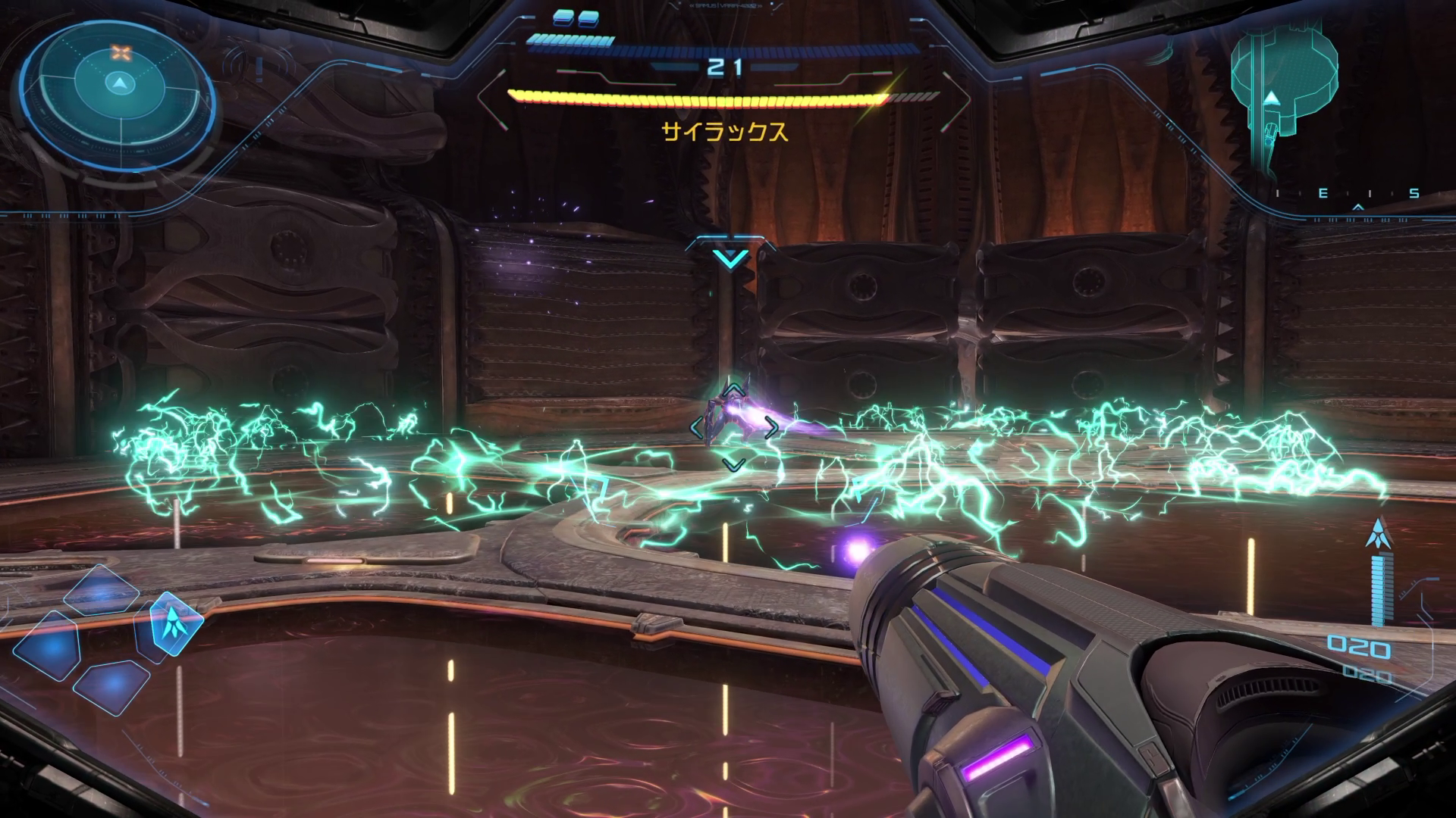 空中でエネルギー弾を広げて攻撃。徐々に奥にくるので、こちらは逆にサイラックスに徐々に近づいていくようにすると避けられる。