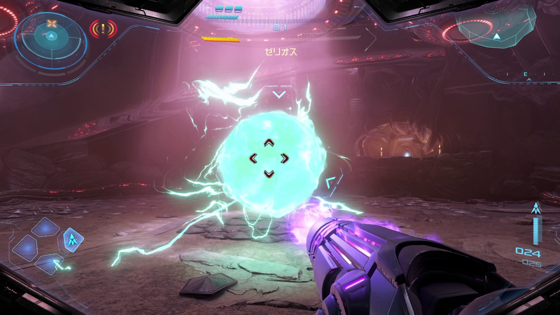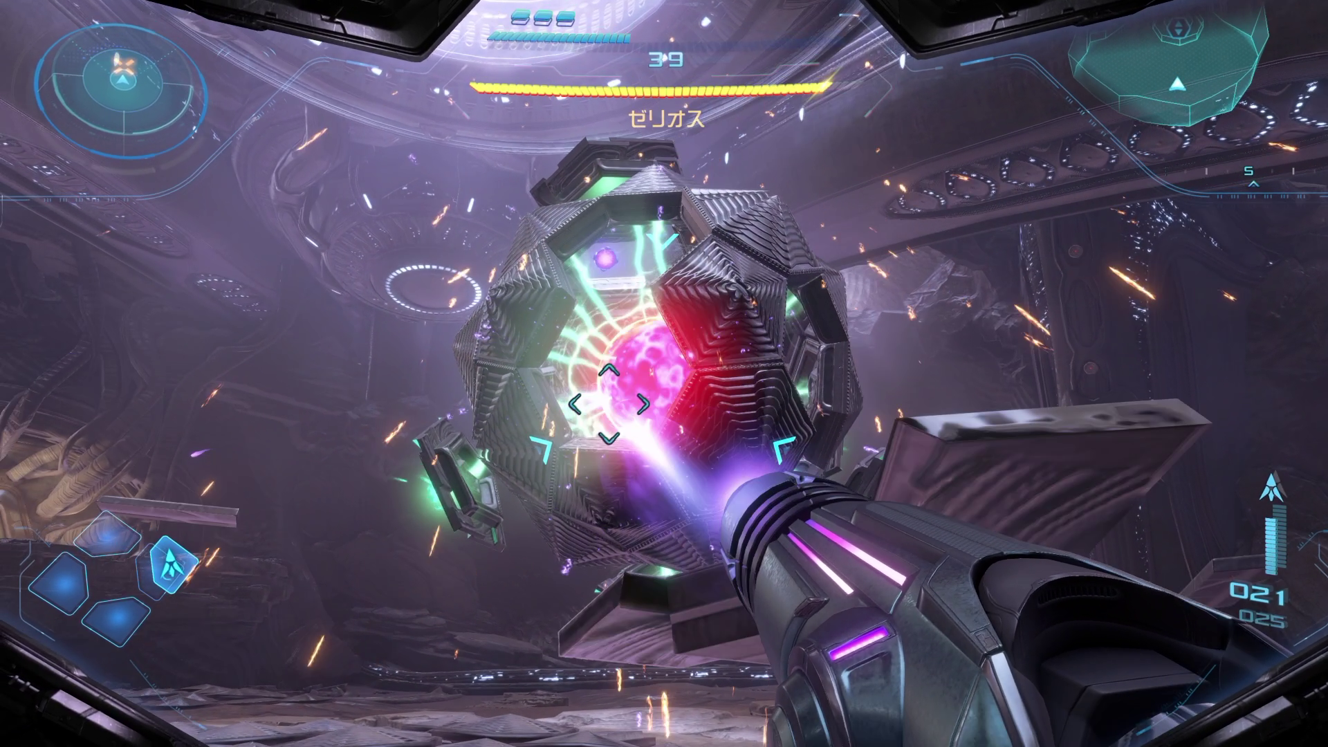 ゼリオスが黄色いフィールドのようなものを展開し、サムスを電撃で足止めしているとき、ボール状態になってボムを使って爆発すると行動可能に。