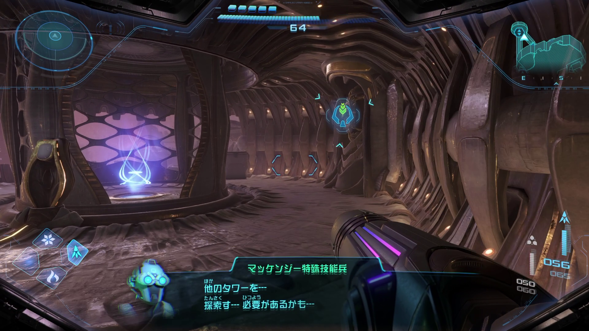 タワー2の外まででて(最下層)、すぐ左側、スカウトボットがある辺りからスパイダーで向かった先にあります。スカウトボットの辺りから先にスキャンしておいて飛べるようにしておきます。