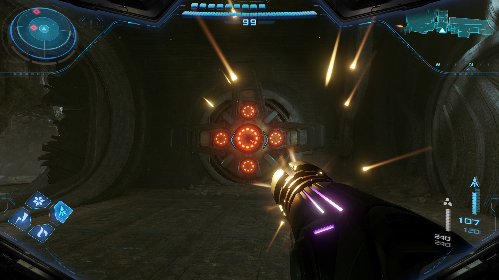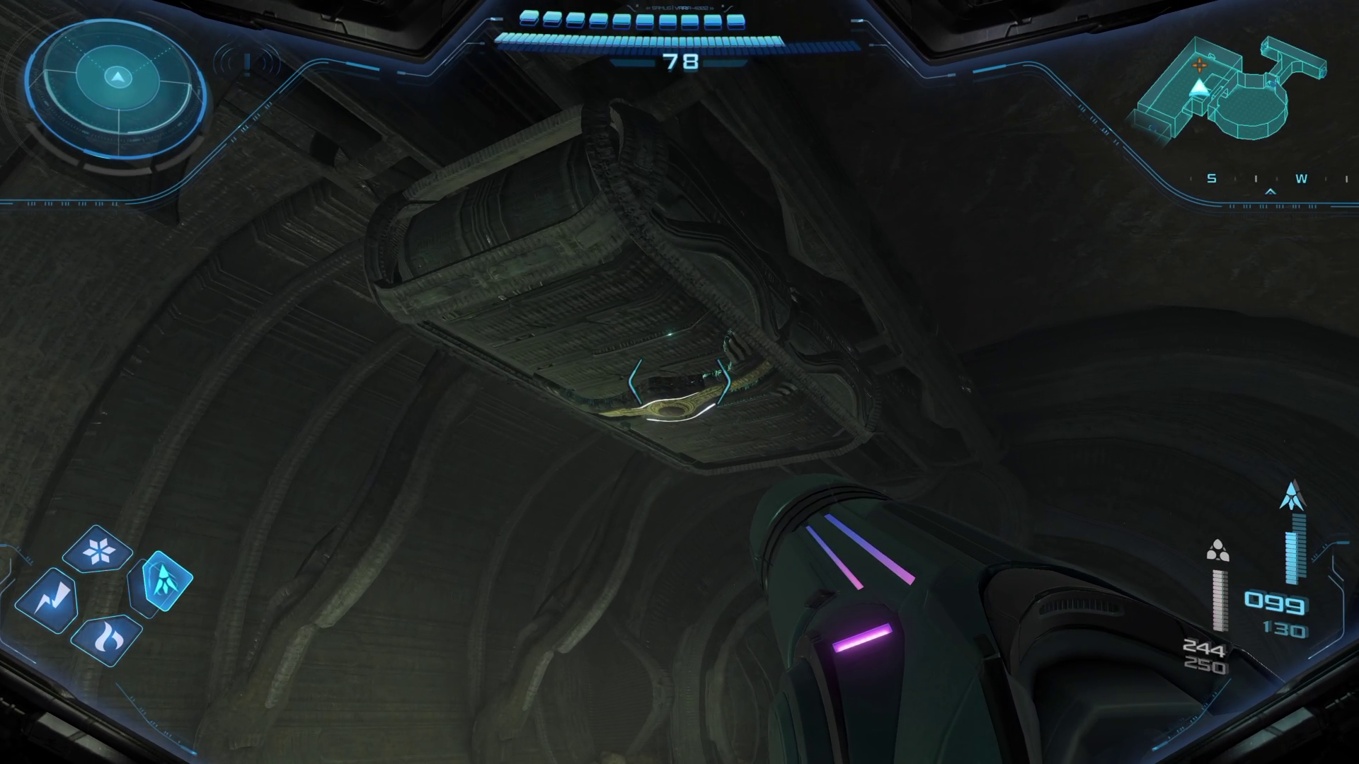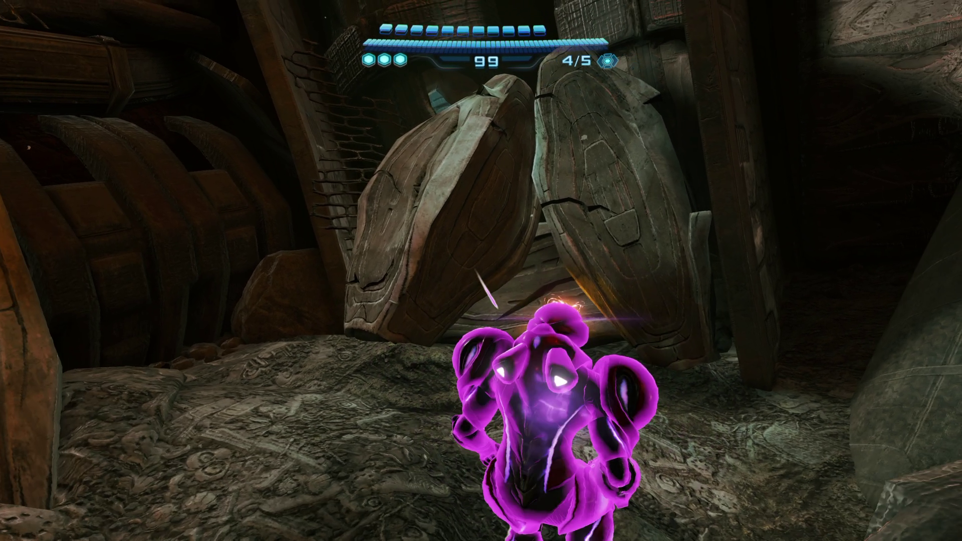 入口のスパイダーで登れる場所の上にショットタンクが見えます。このショットタンクは反対側から見るとグラップルで登れて、スーパーミサイルで破壊できるオブジェクトがあるので、破壊してボールで進めば入手。