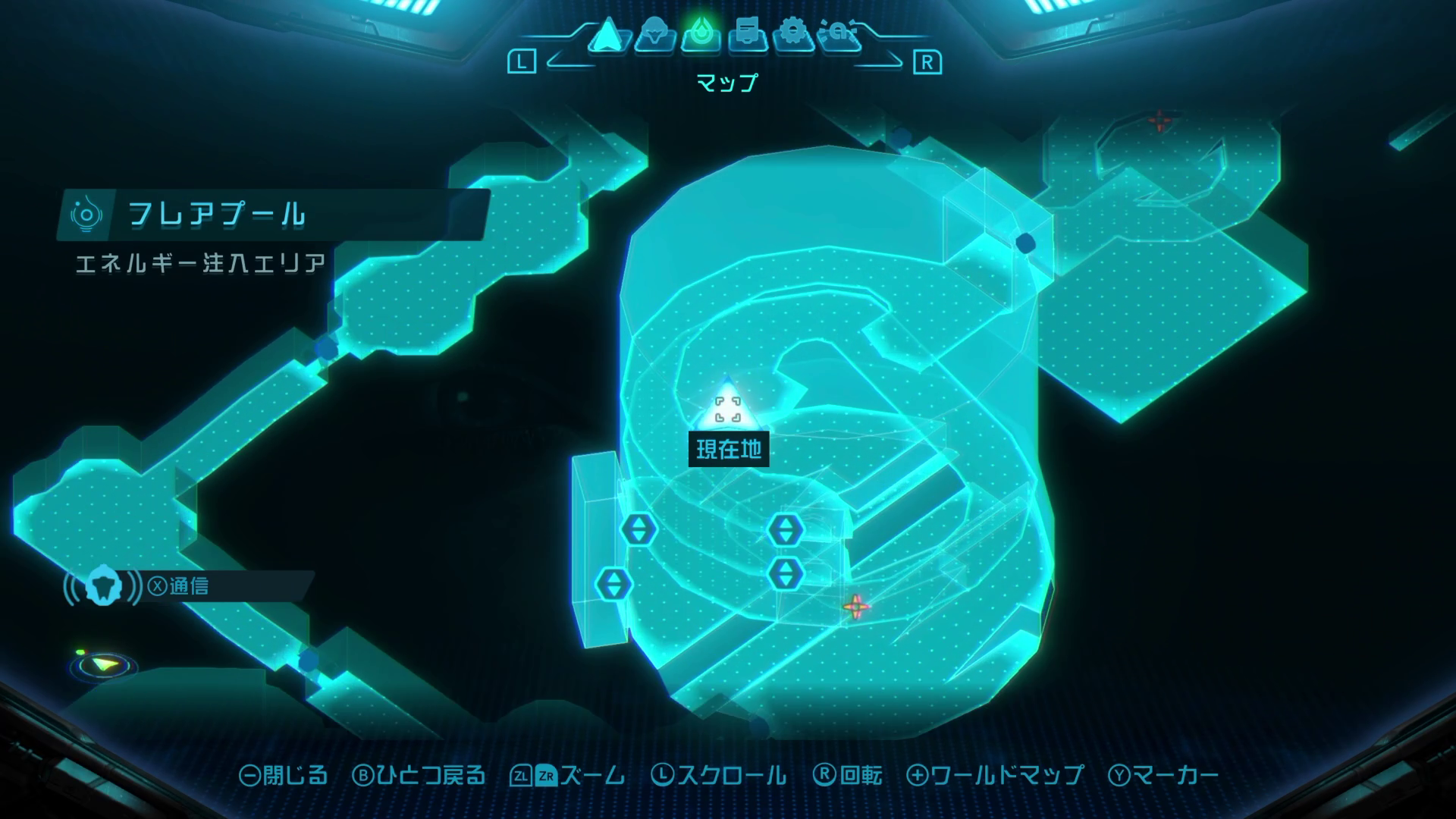 サンダーショット入手後のアンドロイドがいた部屋にあります。スパイダーボール状態で登っていく必要があるので、スパイダーボールを入手しておきましょう。アンドロイドのあとすぐに入手できます。