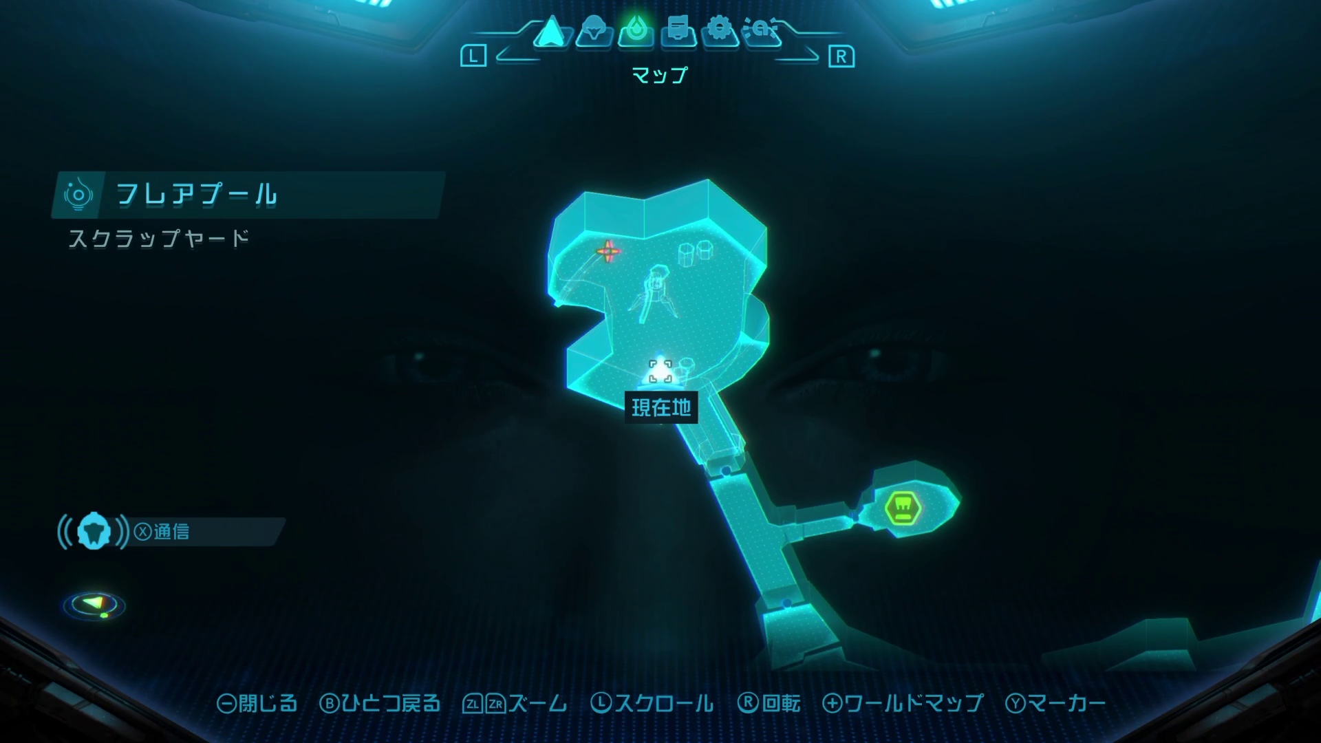拠点からカーゴランチャー方面にでて、ファイアショットで入口を開いた先。サンダーショット入手後。