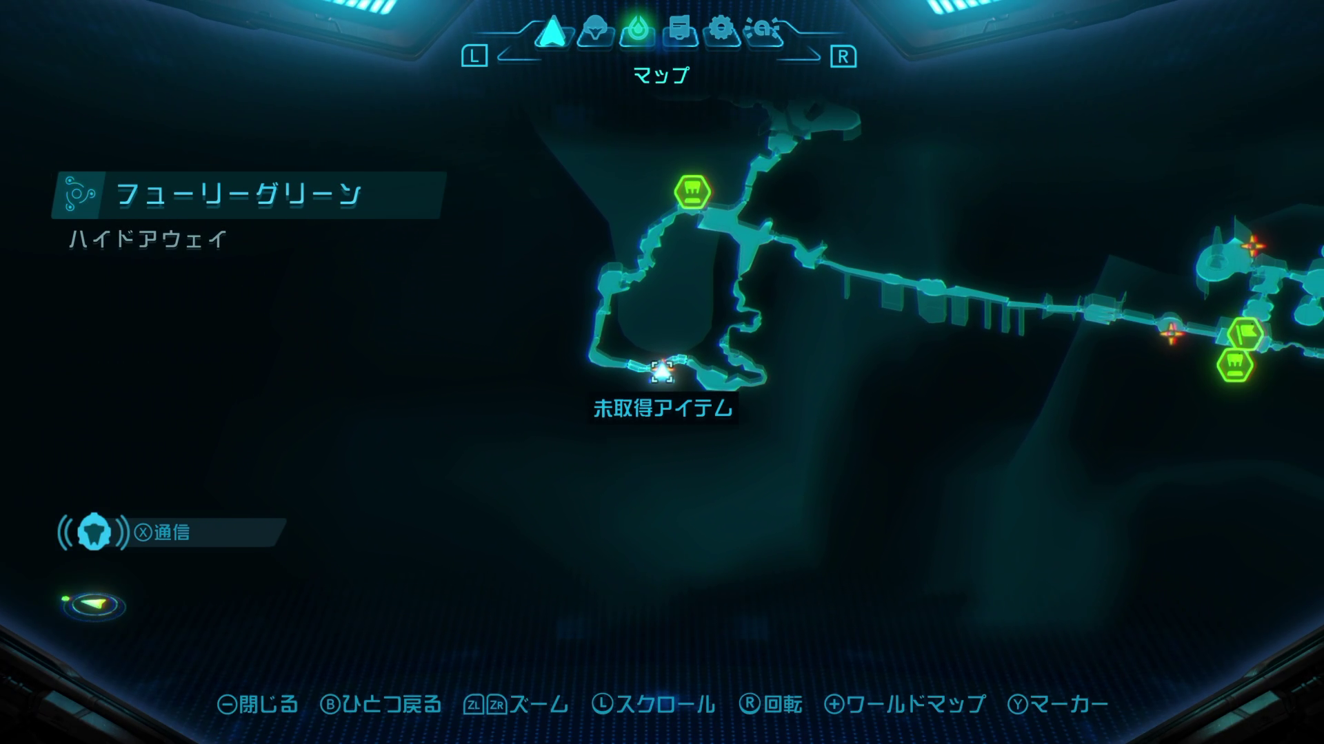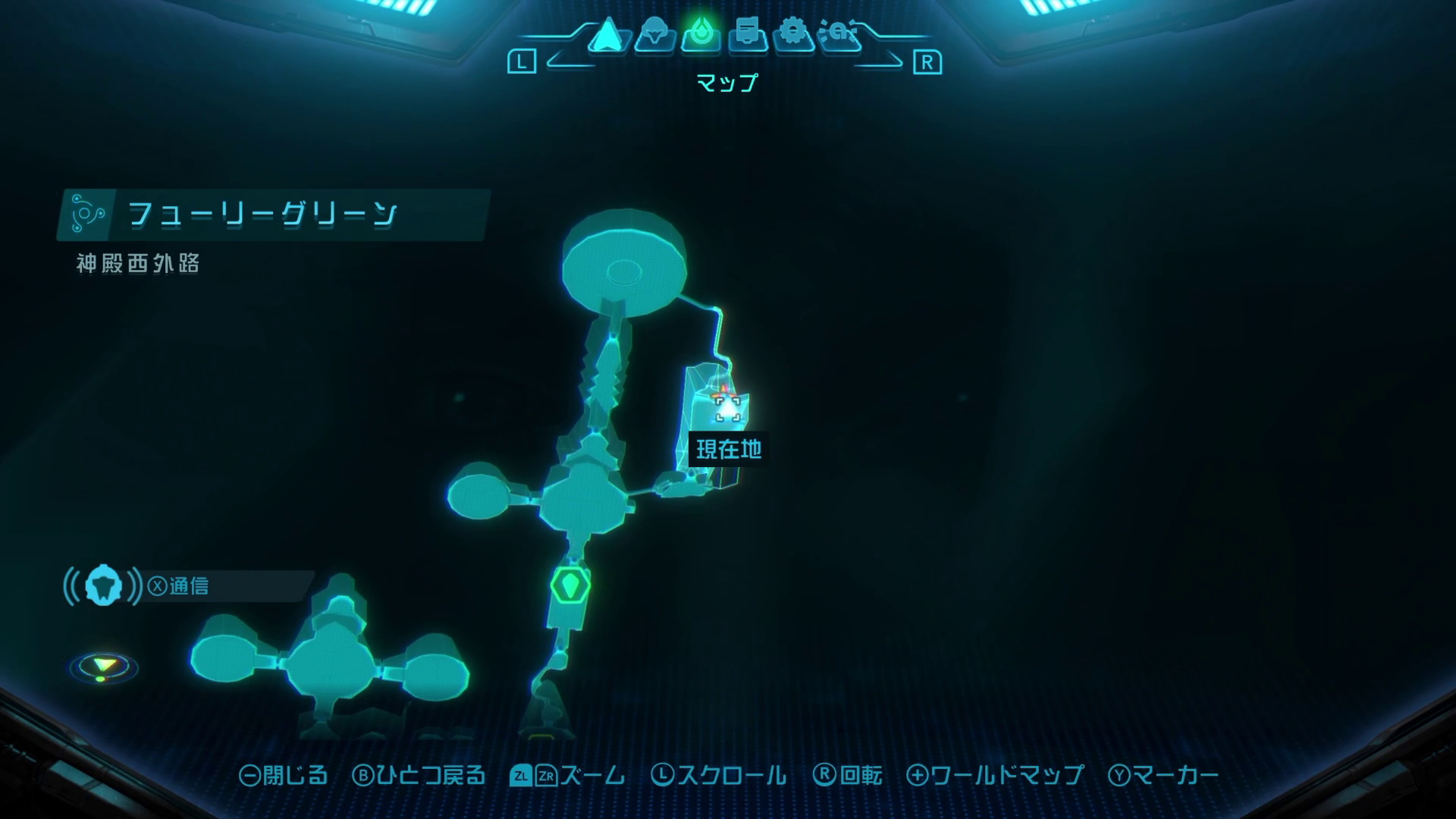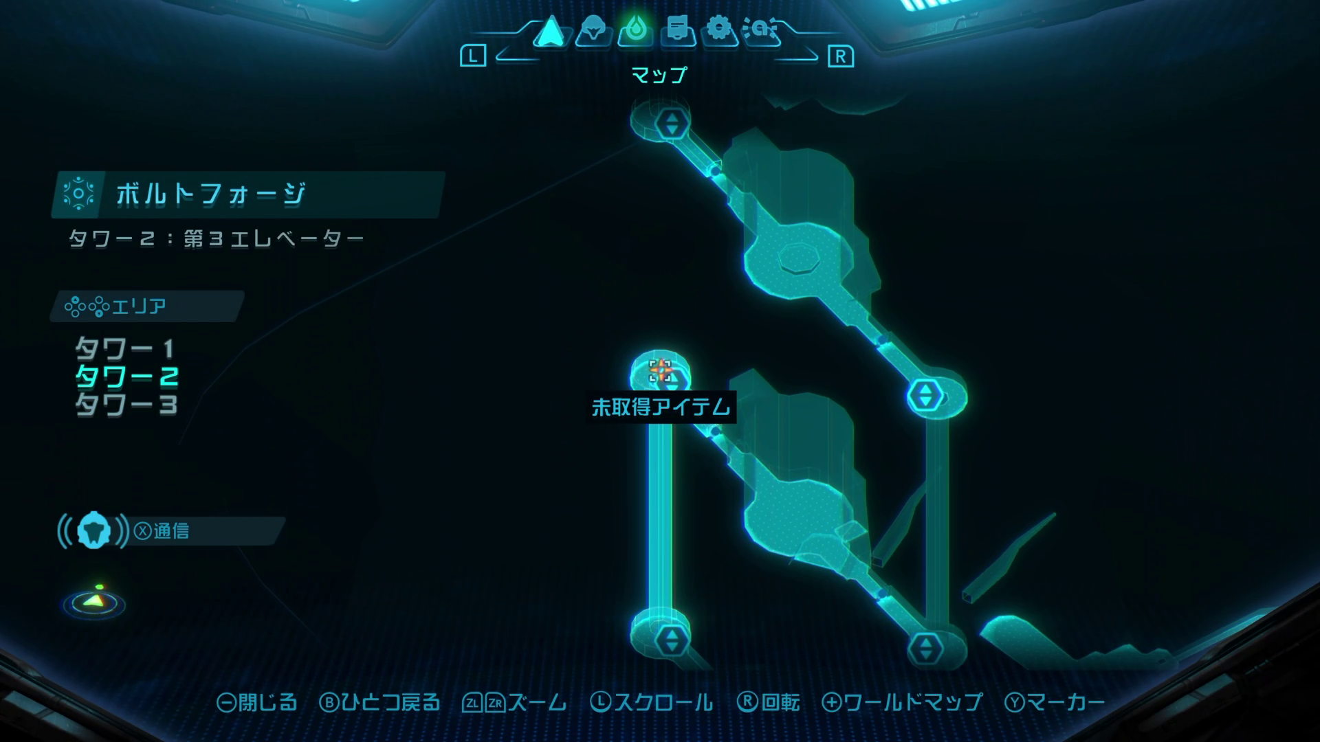 発電ステーションで、スキャンでスパイダーを具現化して登ります。最初はダッシュで届くので、ちょっと前にでたらダッシュで掴んで、上に登ってZLで捕まります。まっすぐ先に進めば入手。