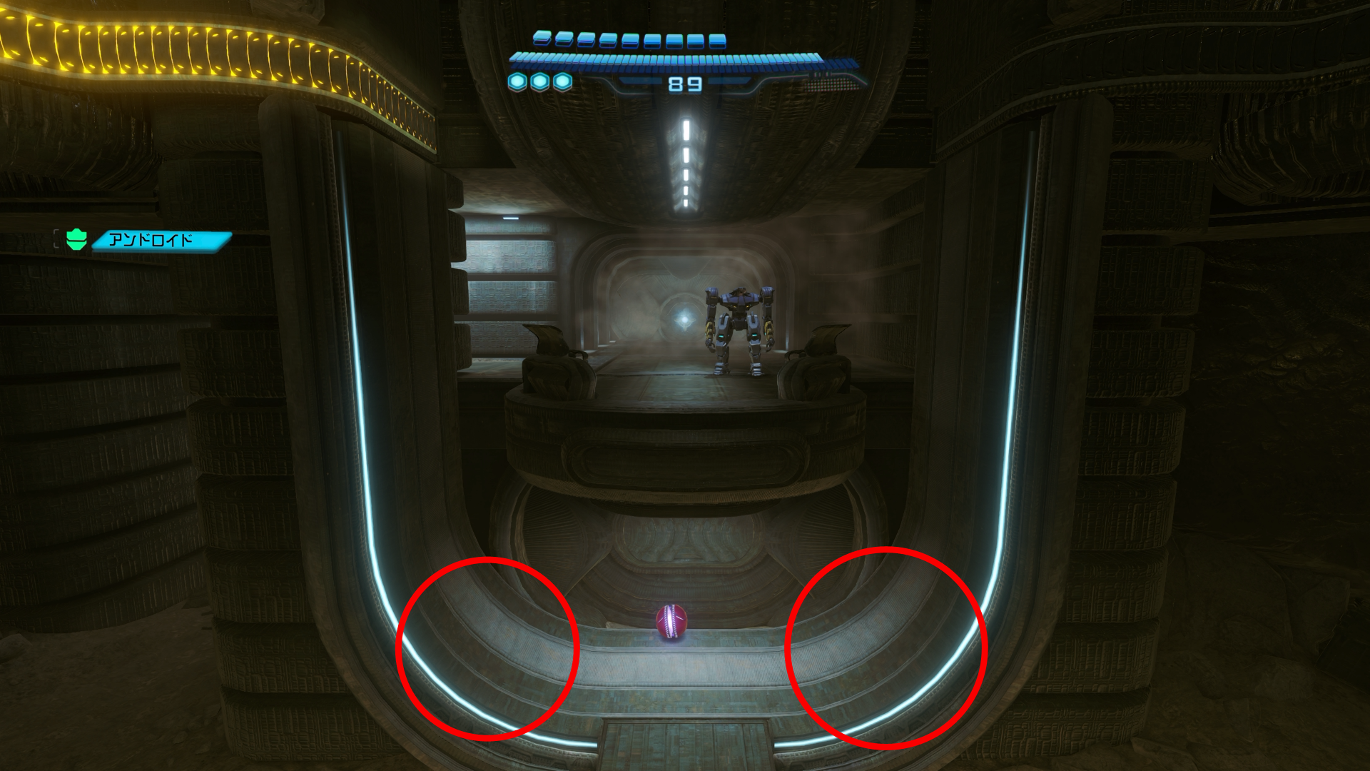 ハーフパイプ状のものを登る際は、ちょうど曲がっている辺りで指を離すとどんどん加速していきます。ある程度適当でも問題はありませんが、一部の場所はタイミングよくしっかりやらないと高い位置にいけなかったり。