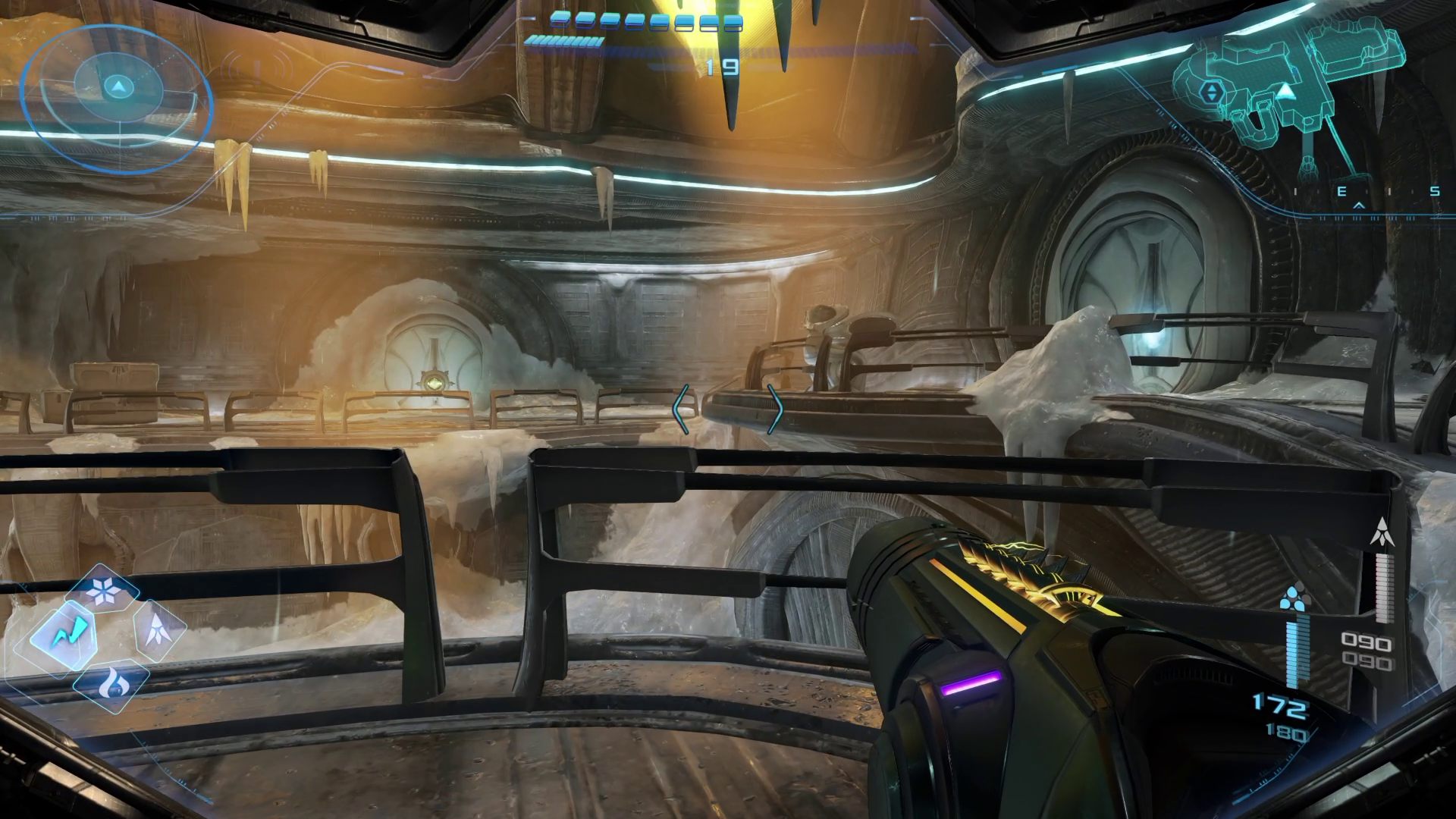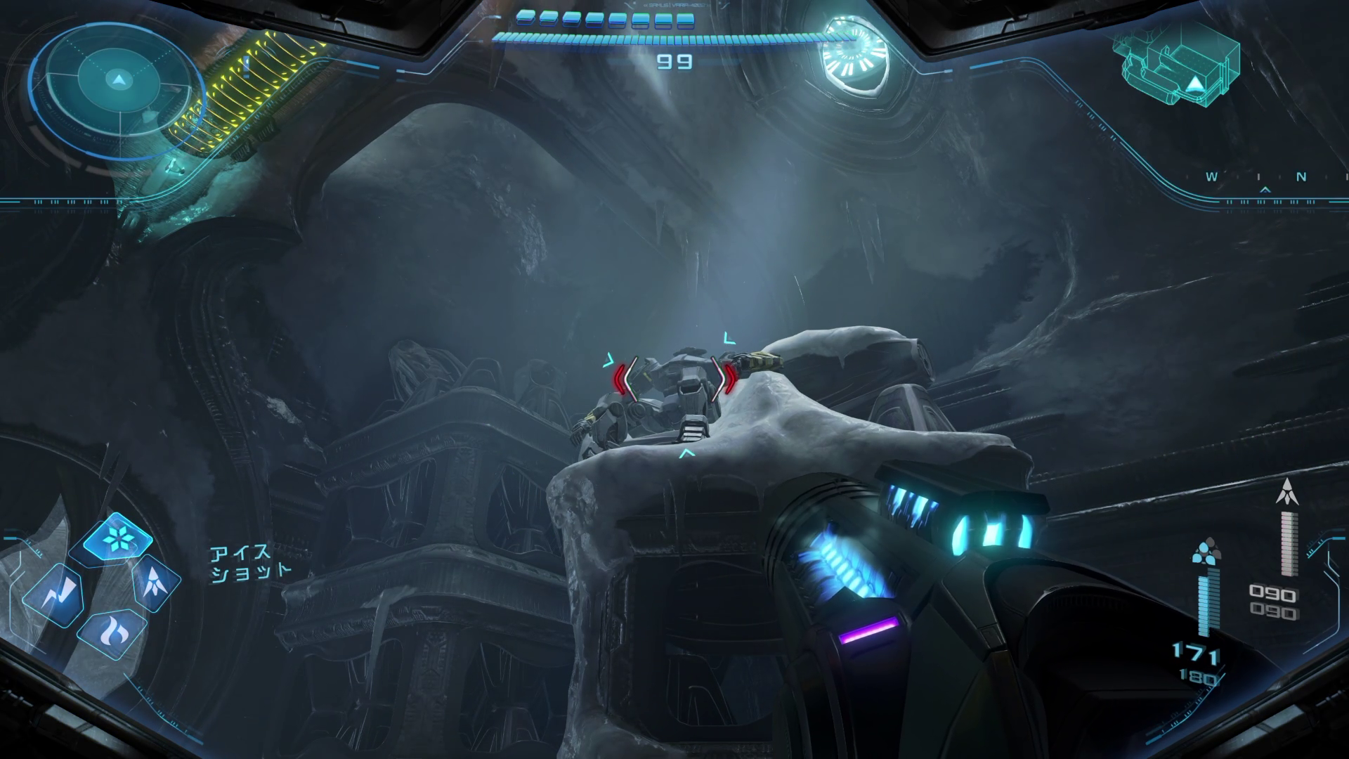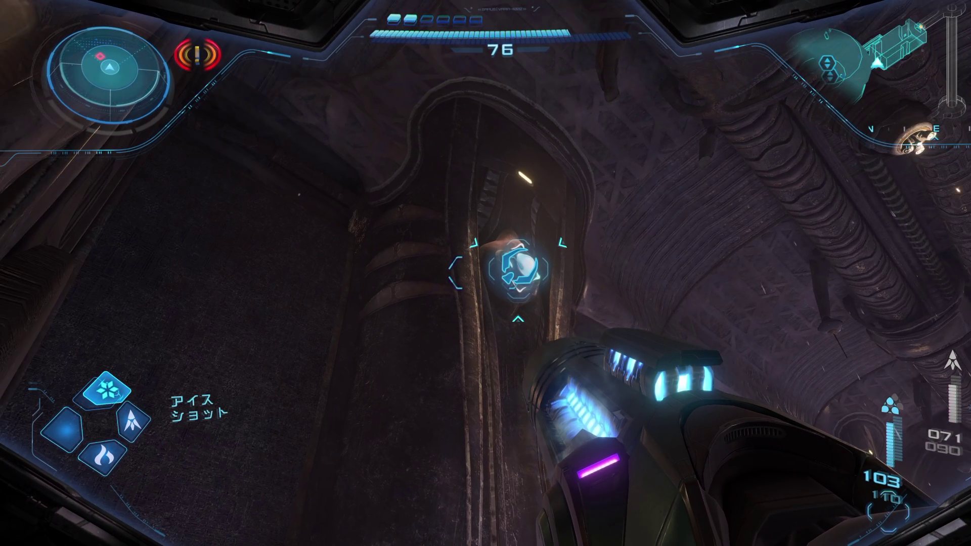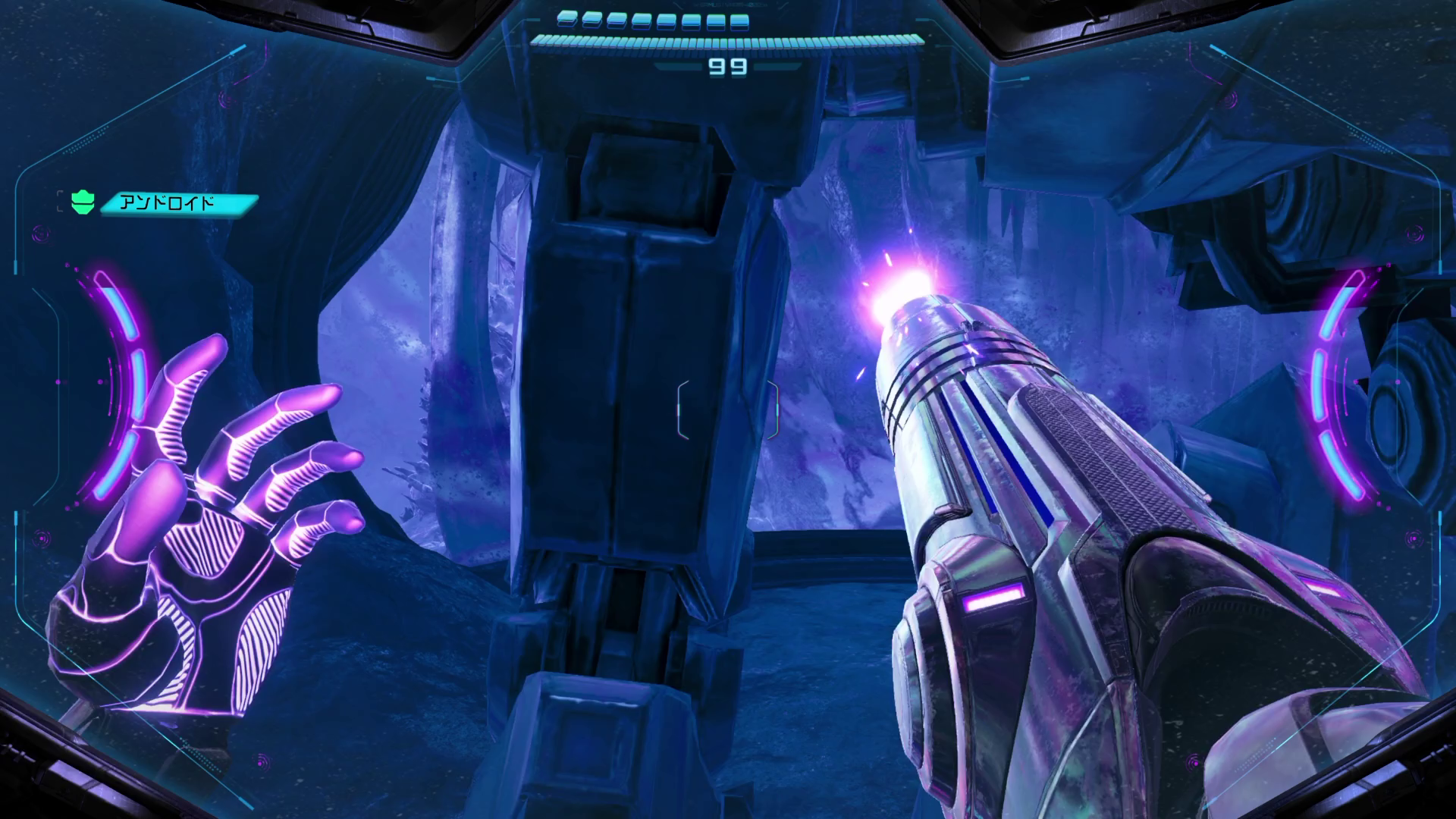 外に向かう。スキャンすると壊せないガラスなどをアンドロイドが壊してくれる。ヒビが入ったらチャージショットで壊して先に向かうことも可能