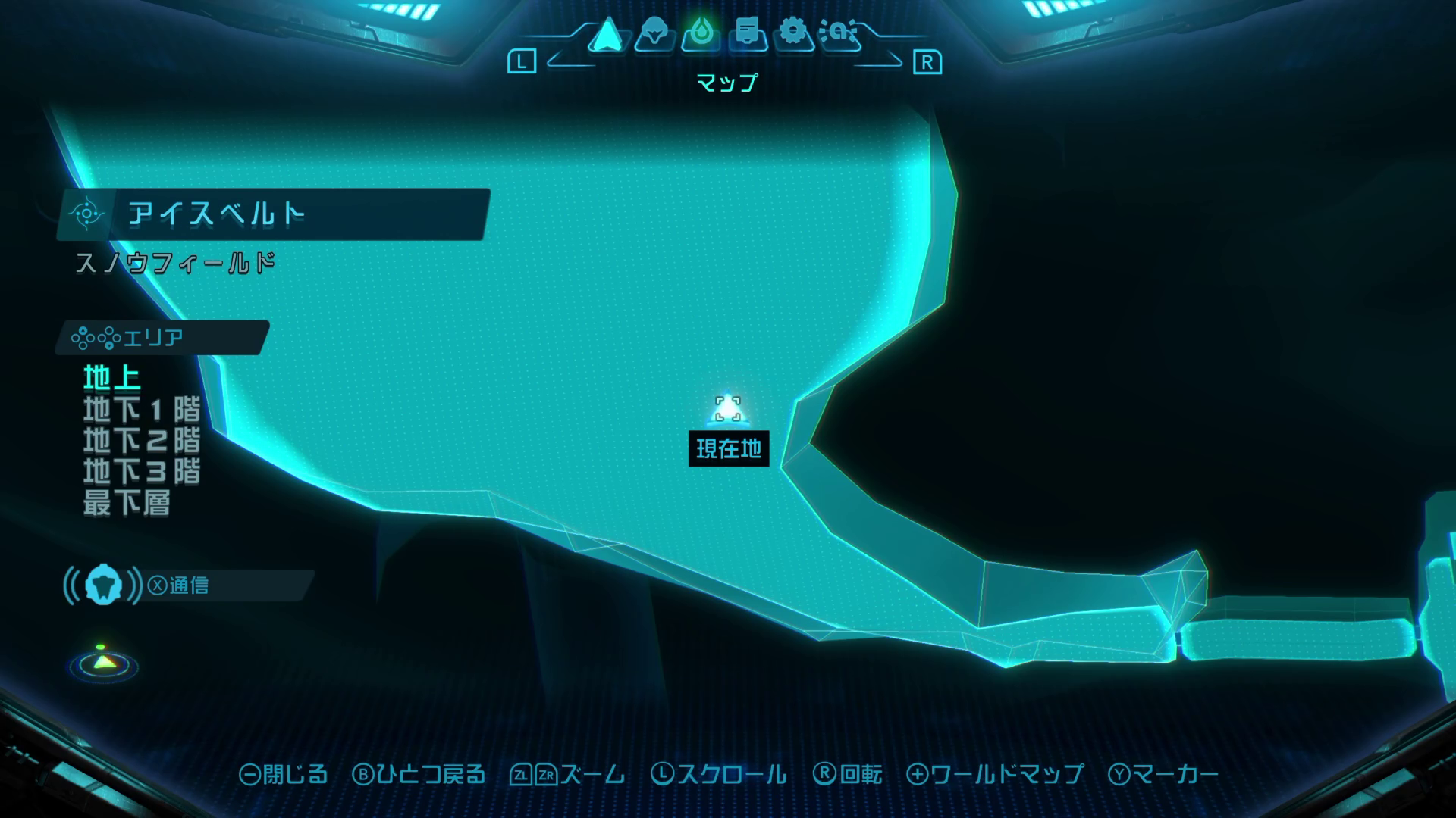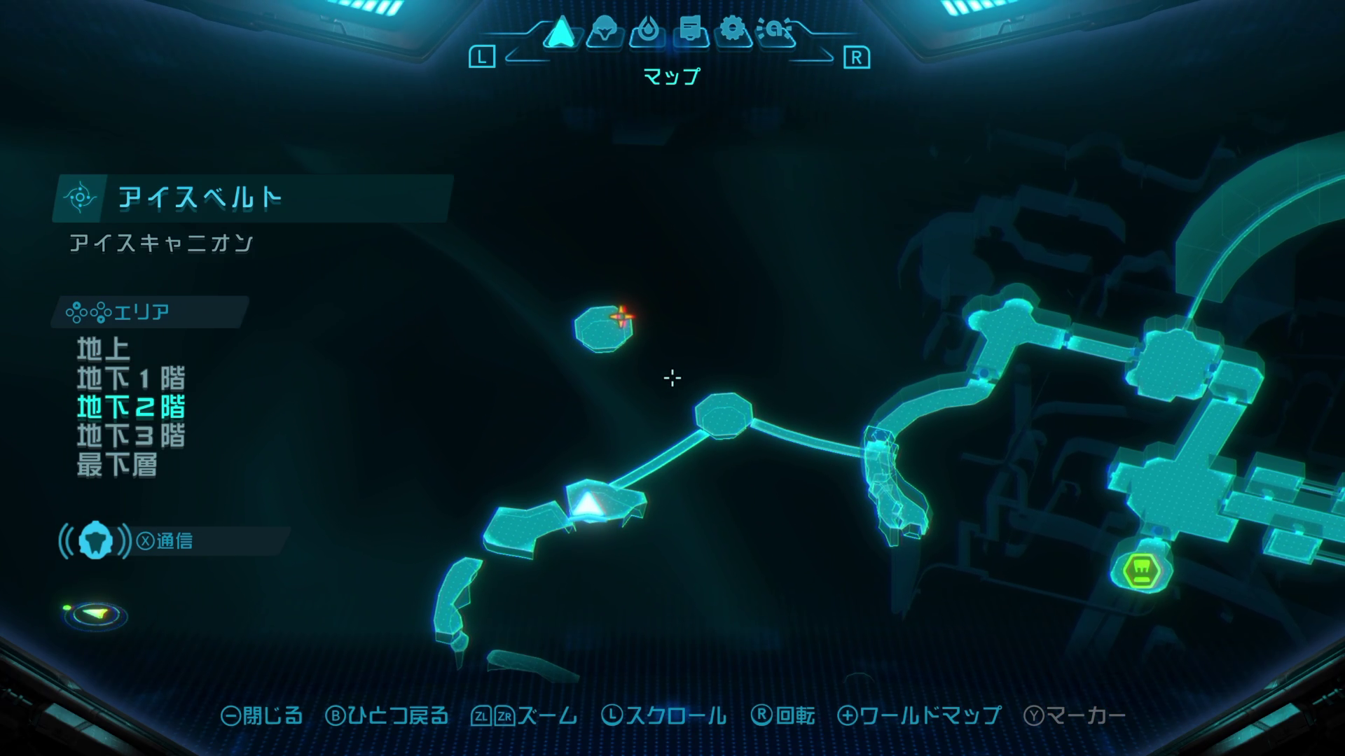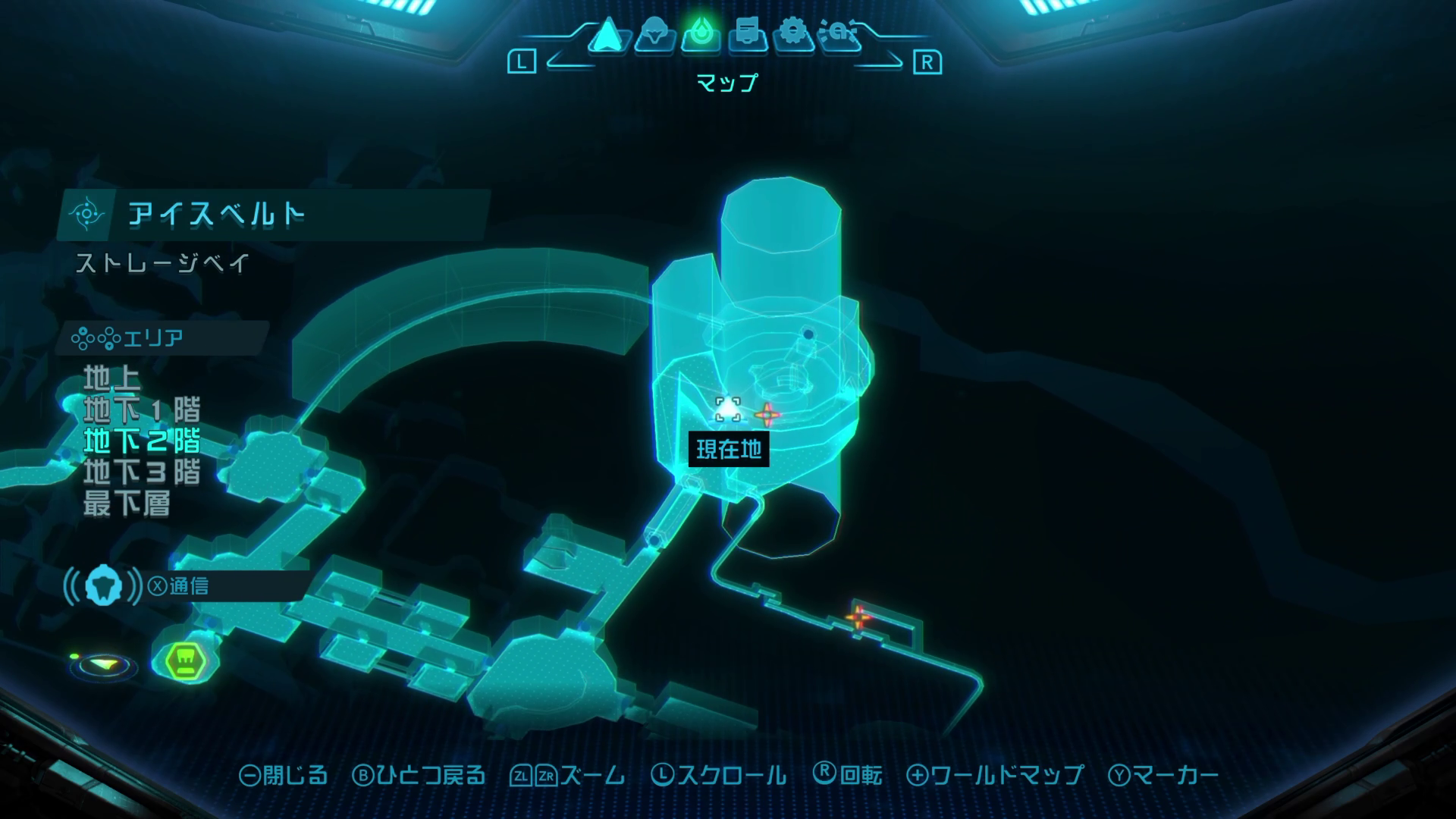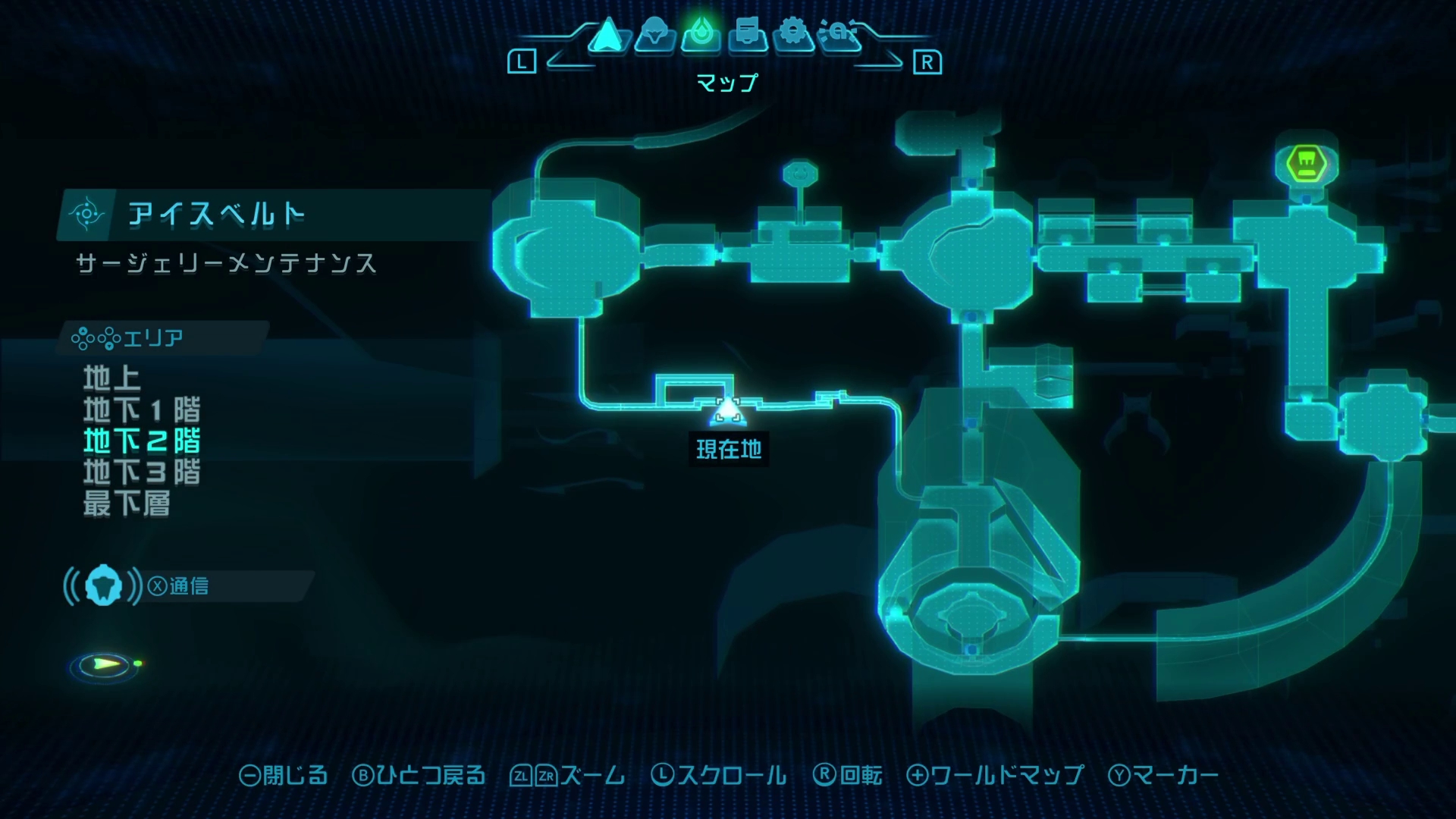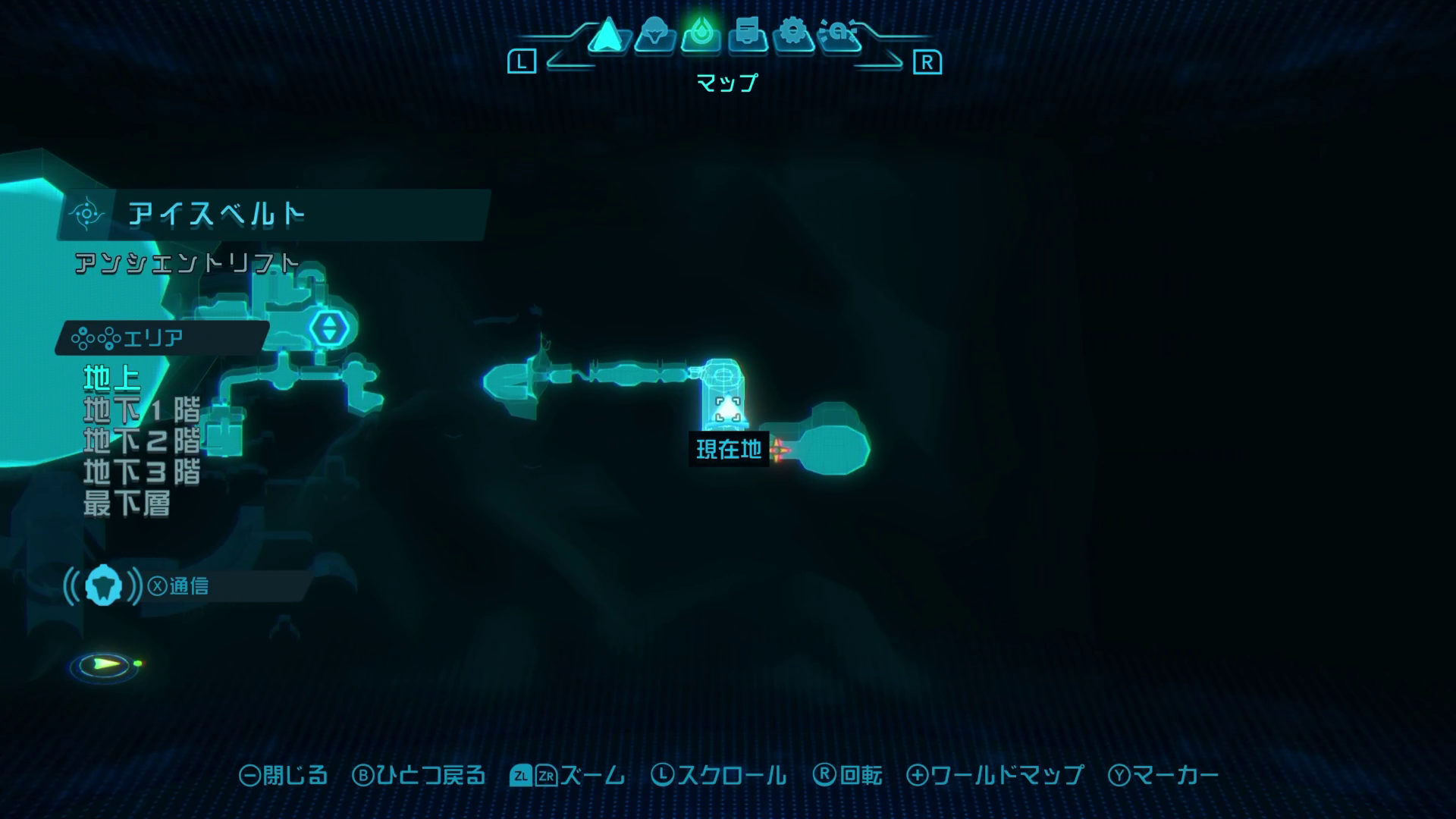 地下一階のラッソ入手後に向かいます。左側の場所はエリアマップが入手できる場所で、その正面の物体をスキャンしたあとに引っ張れるので、その先に向かうと入手。