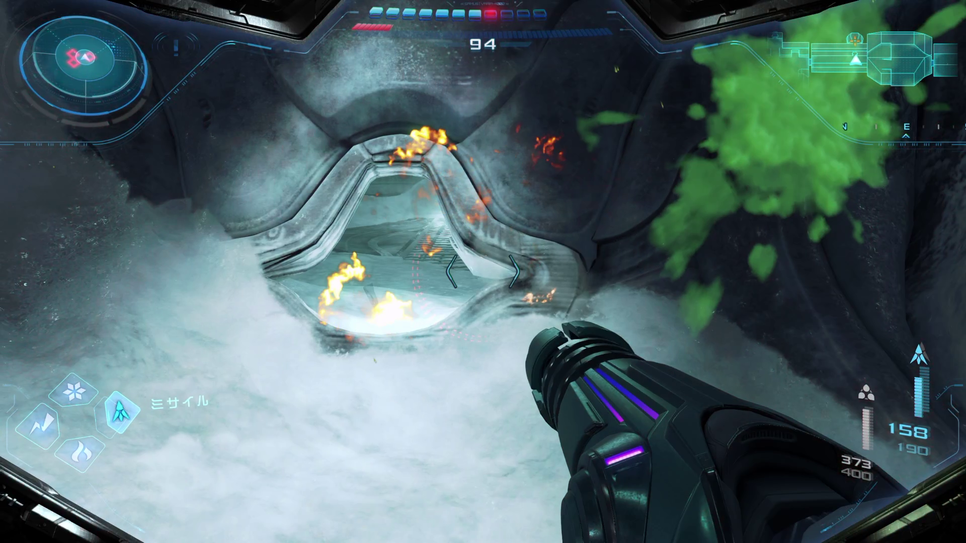 上まで登ったら、左右の赤いのをボムで青にする必要がありますが、時間制限があるので早めに。するとミサイルタンクの扉が開くので入手できます。