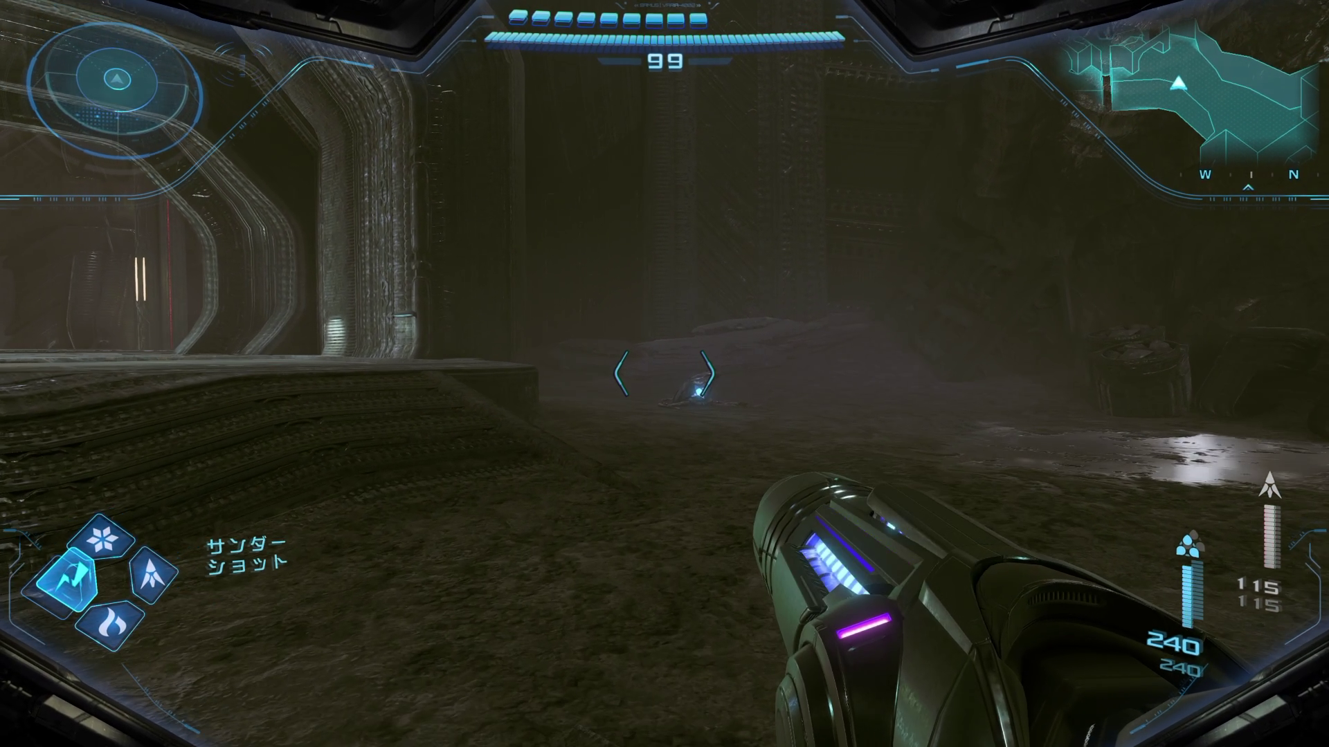 入口のスパイダーで登れる場所の上にショットタンクが見えます。このショットタンクは反対側から見るとグラップルで登れて、スーパーミサイルで破壊できるオブジェクトがあるので、破壊してボールで進めば入手。