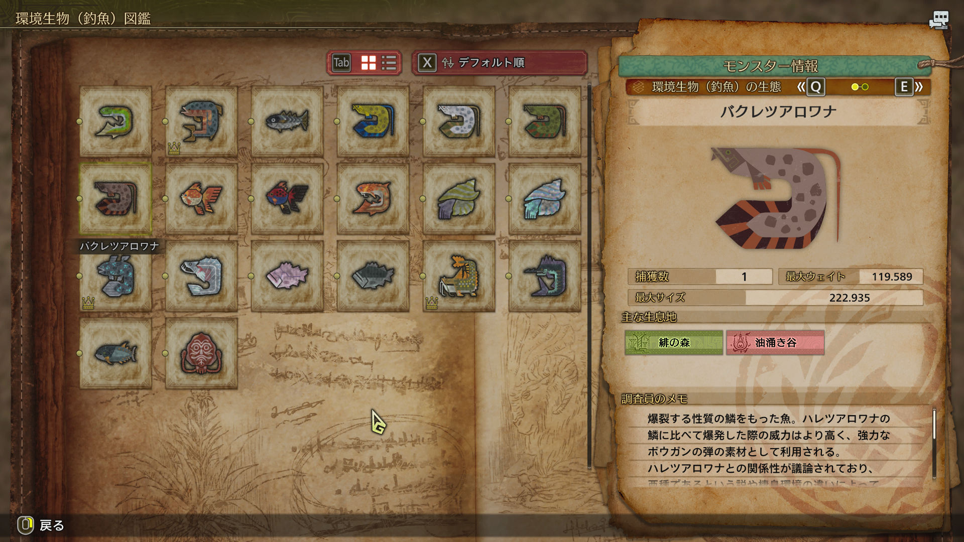 バクレツアロワナは上記二箇所に出現します。調合に使ったりもするので、ある程度乱獲しておけると嬉しいです。洞窟などに出現。