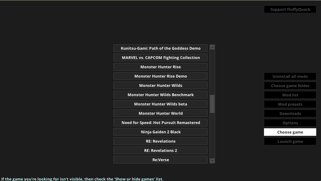 それ以外だともう初歩的な部分確認していくしかなさそうな感じですね。そもそもfluffymodmanagerのmhwildsのmodsフォルダに本当にちゃんと配置しているのかどうか。beta版とか別のモンハンと間違えてないか。そもそも入れたmodがモンハンワイルズのものか、zipファイルのmodsを入れるものを間違えてないか(他のに使っている感じじゃないので問題なさそうですが)