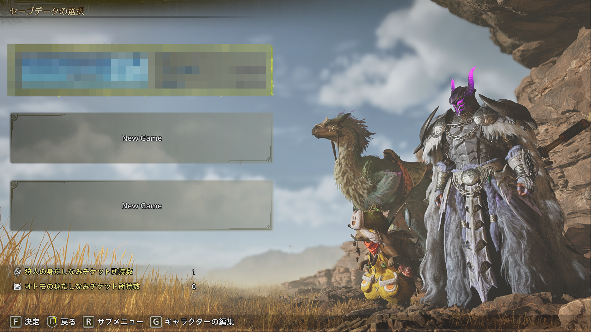 タイトルのセーブデータ選択画面で「キャラクターの編集」
