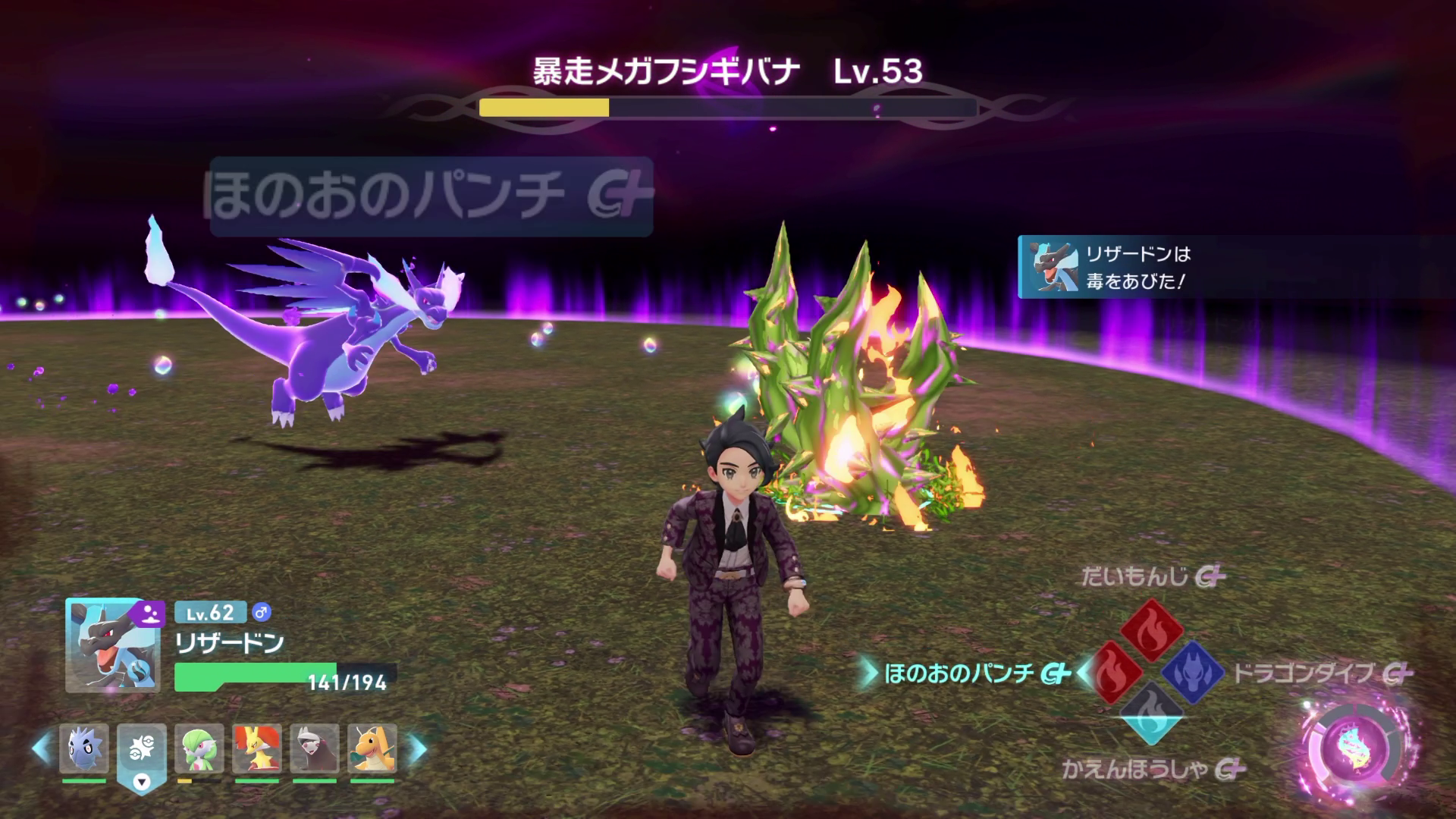 メガフシギバナが使用してくるツタは放っておくとHPを回復するツタになってしまいます。ほのお属性の技だと勝手に延焼してくれるので、基本メガフシギバナ戦ではほのおタイプのポケモンを使いましょう。