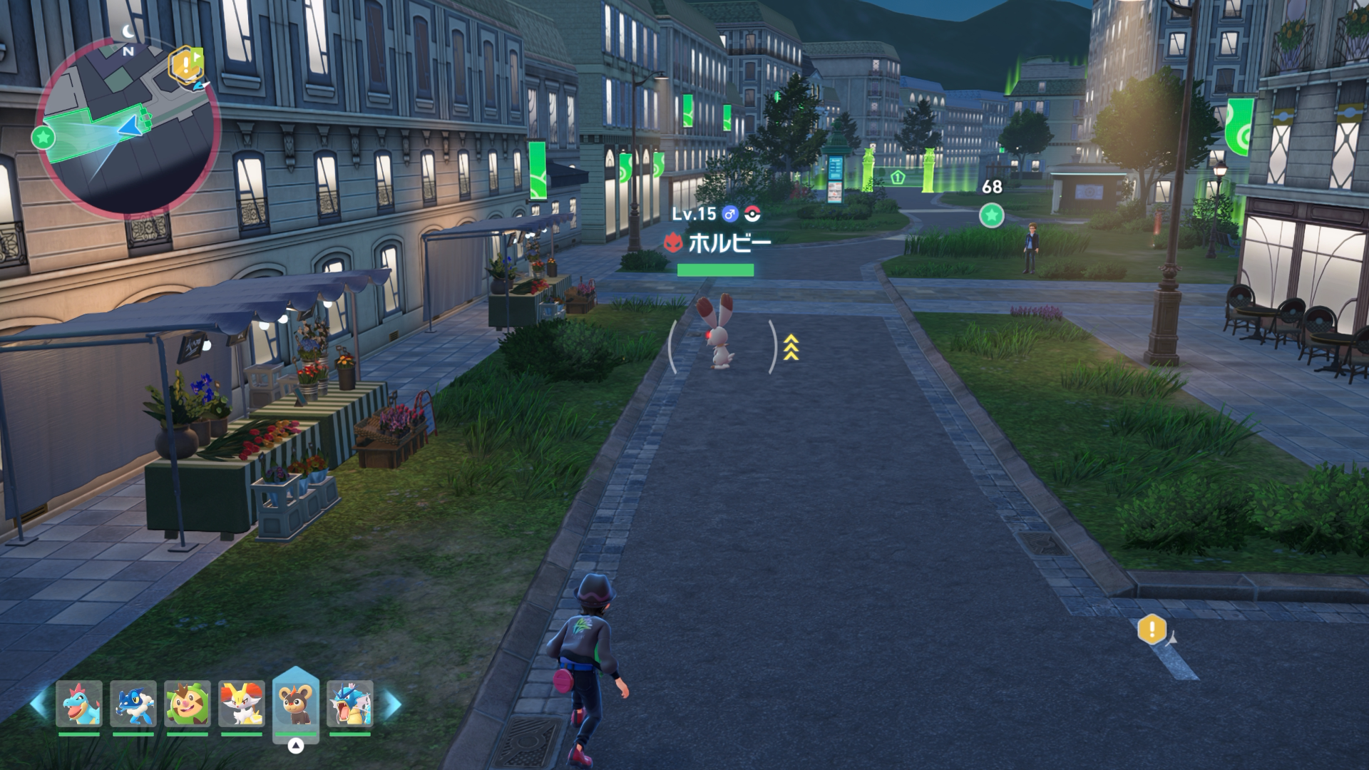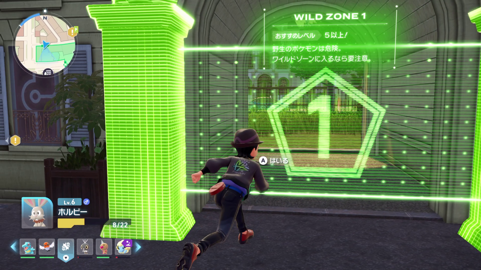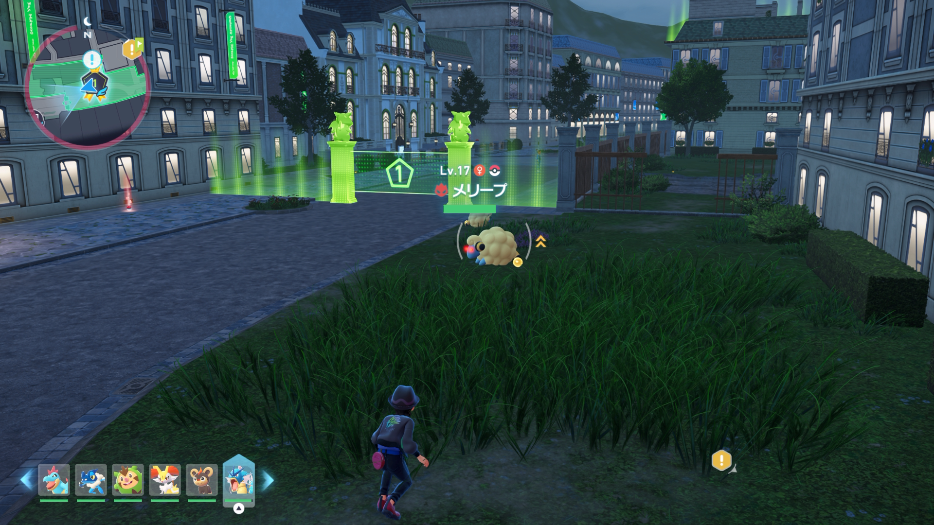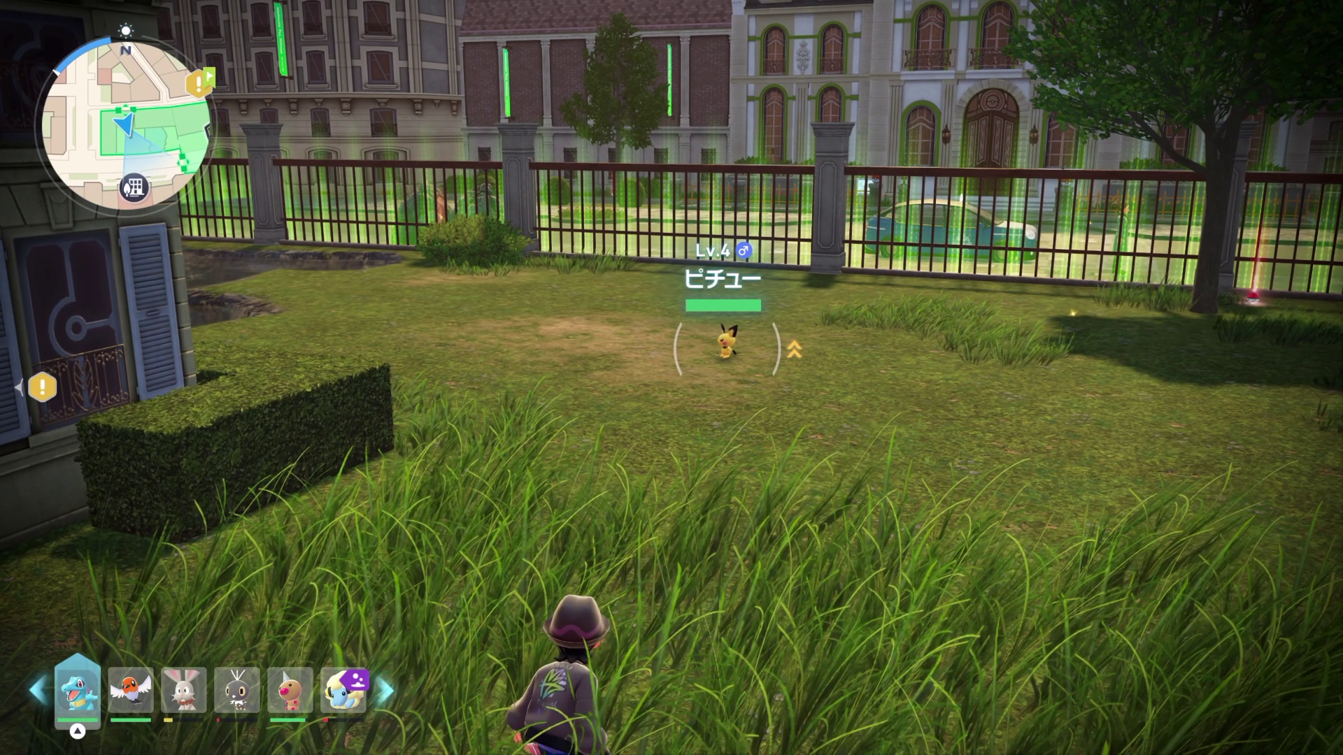 1番ワイルドゾーンにはピチューがいますが、いわくだきしてはしごを登ってからだと気づかれやすいです。もちろんそれでも捕まえることができますが、左の画像のように、ピチューがいる側のエリアからしゃがんで近づくことで簡単に捕まえられます。ぐるっと迂回することにはなりますが、ワイルドゾーンもエリアが囲まれていて場所自体はわかりやすいです。