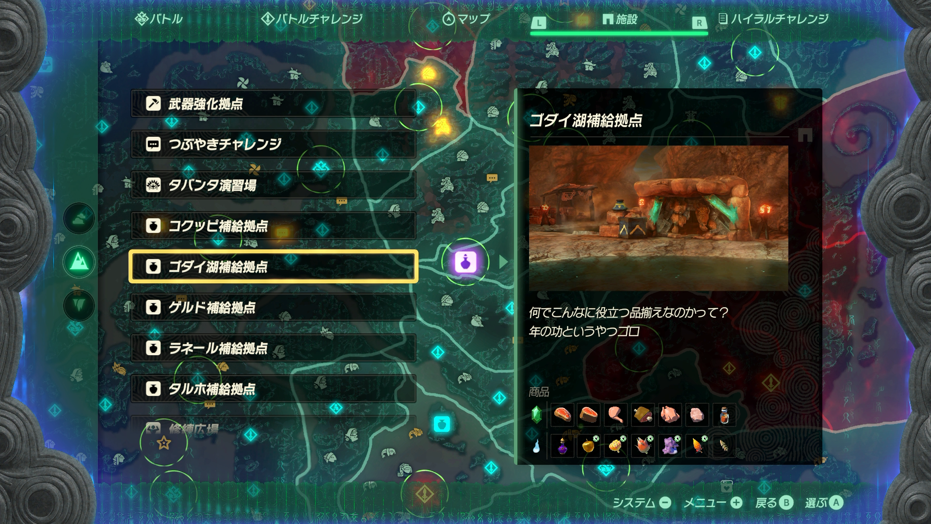 クリア後は補給地点にくるハイラルチャレンジがあるので、クリアしておくと戦闘終了後にマモノ交易所がいることがあります。