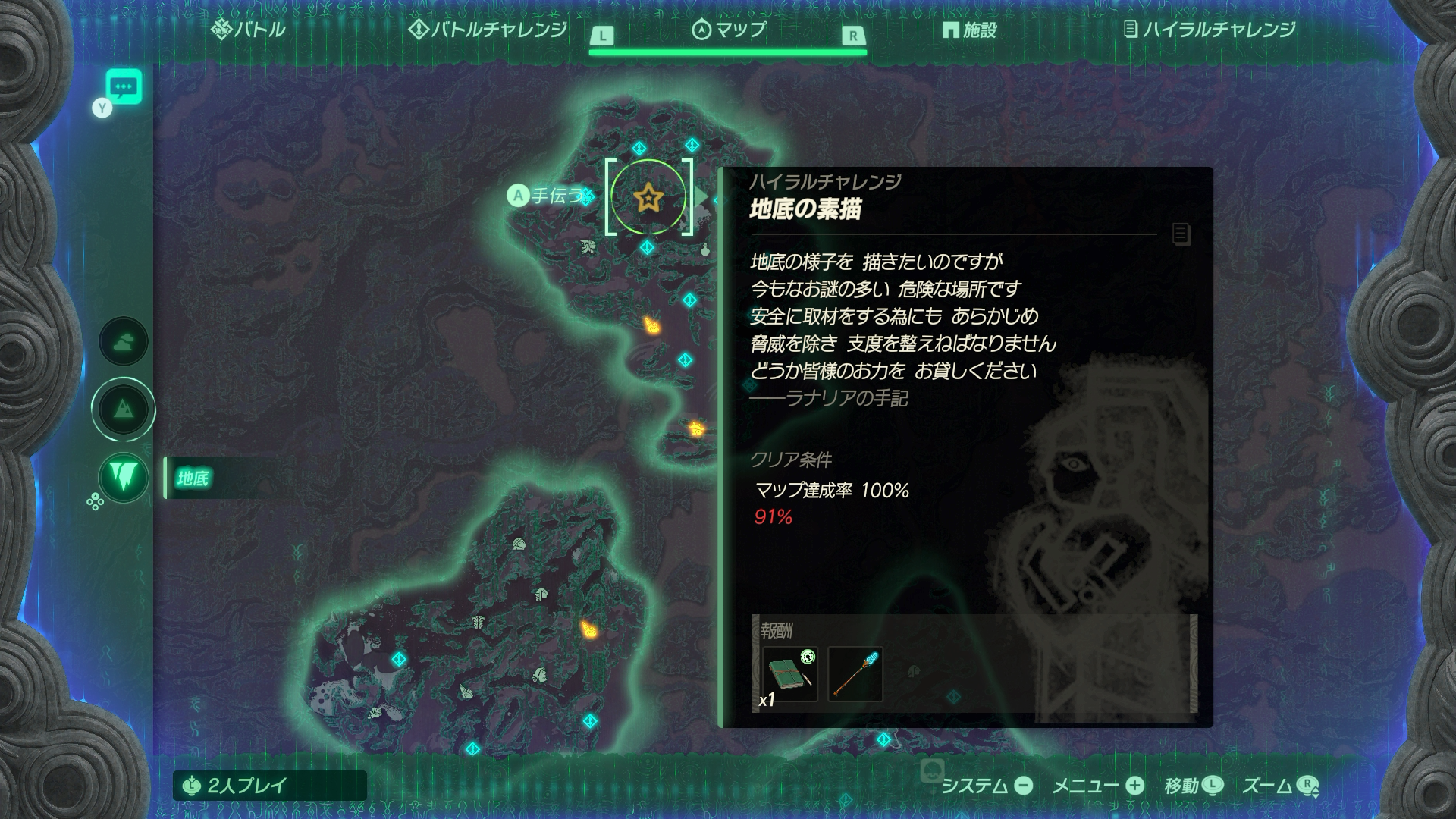 ラナリアの素描はハイラルチャレンジも埋めて行く必要があります。必然的にコンプリートを目指す場合、すべてのハイラルチャレンジを網羅する必要がでてきます。
