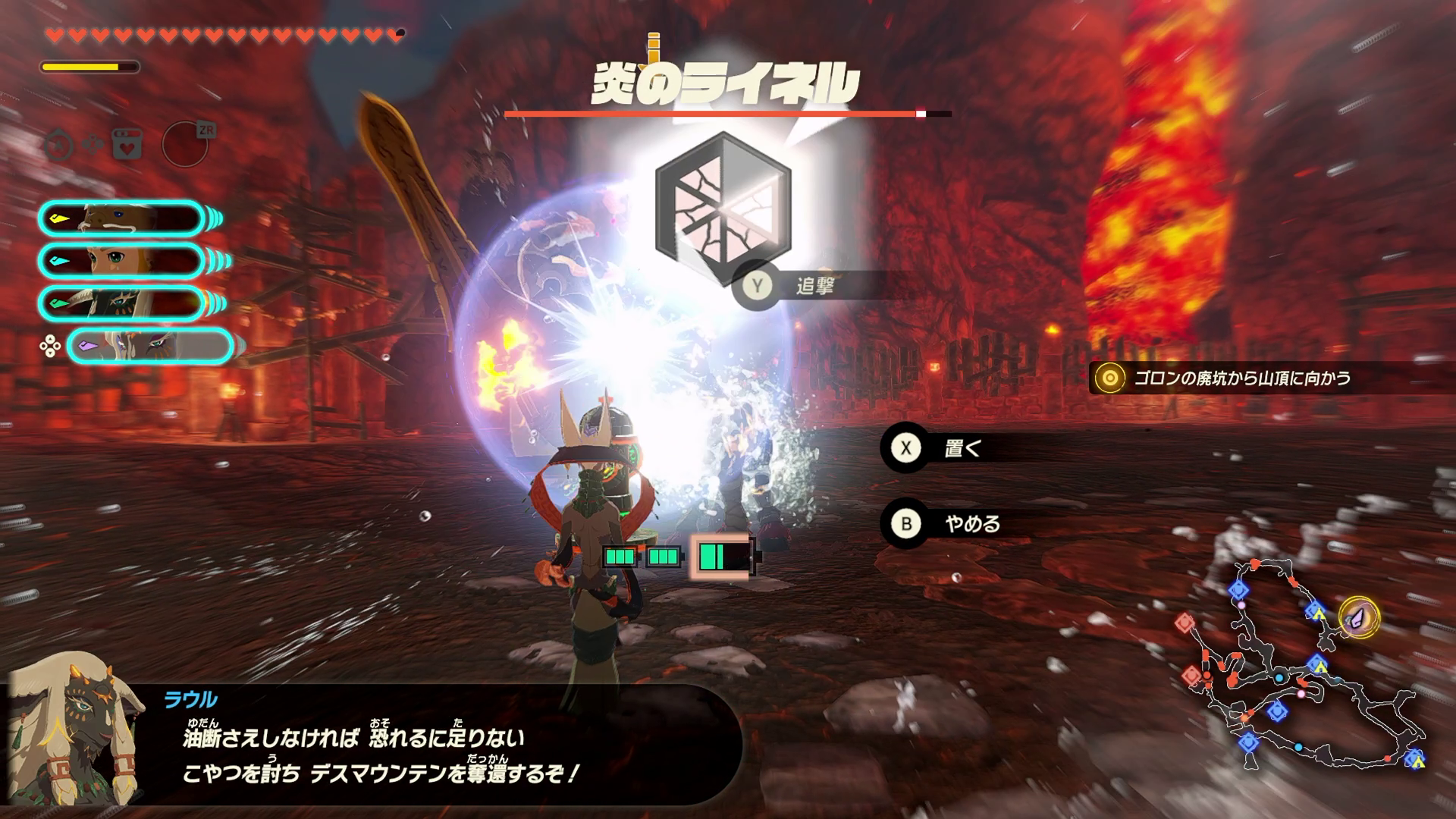 ミネルは謎のゴーレム同様、ストーリーが進んでハイラルチャレンジを進めるとリミットブレイクと同様にゾナウギアのバッテリー消費なし技を覚えます。さらに謎のゴーレム同様に強攻撃にゾナウギアを取り付けることも。