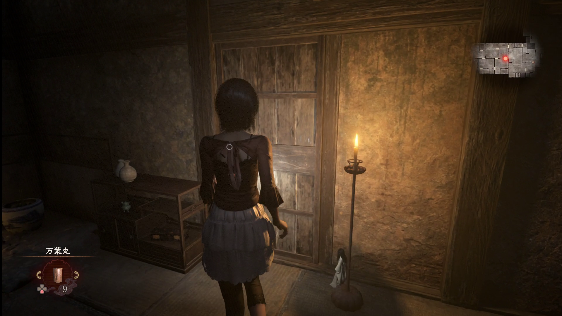 浮遊霊111は、上の画像の場所から外にでると出現します。右に人形がいて、ろうそくもたっているのが目印。