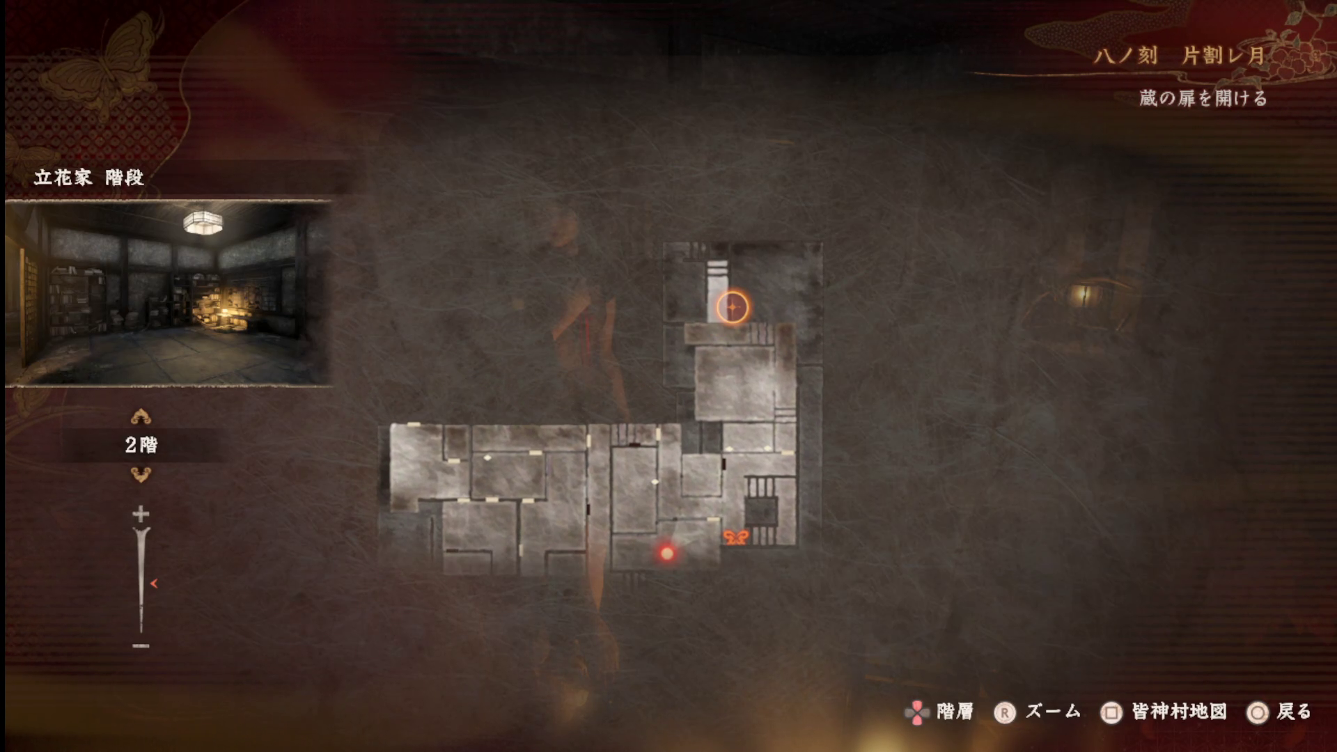 七ノ刻の黄泉からの腕、115番は、繭が閉じ込められて散策パートで見つけられます。繭のいる樹月の部屋から北に向かった階段を降りるとでるのですが、厄介なのは千歳を素直に追いかけているとここに全く行く必要がありません。一応上から行くと映写室にいけて、かつ地縛霊のいる双子の部屋にもいけるようにはなるのですが、ルート取りとしては完全に寄り道です。