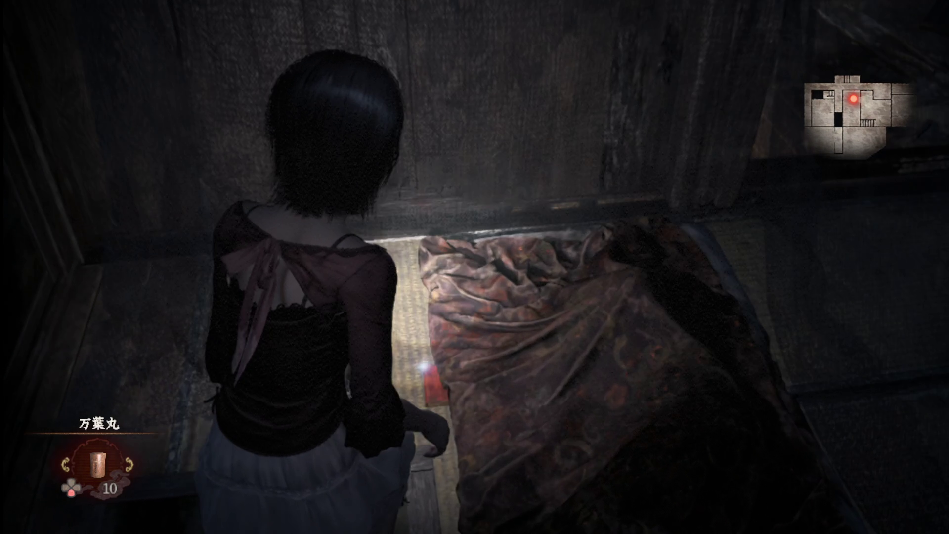浮遊霊2は懐中電灯を拾ったあと、布団側にある手帳2を拾うと正面の窓に出現。拾わないと出現しませんでした。